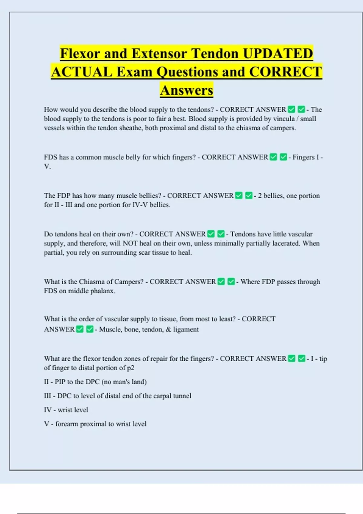Flexor zones of hand - CORRECT ANSWER -