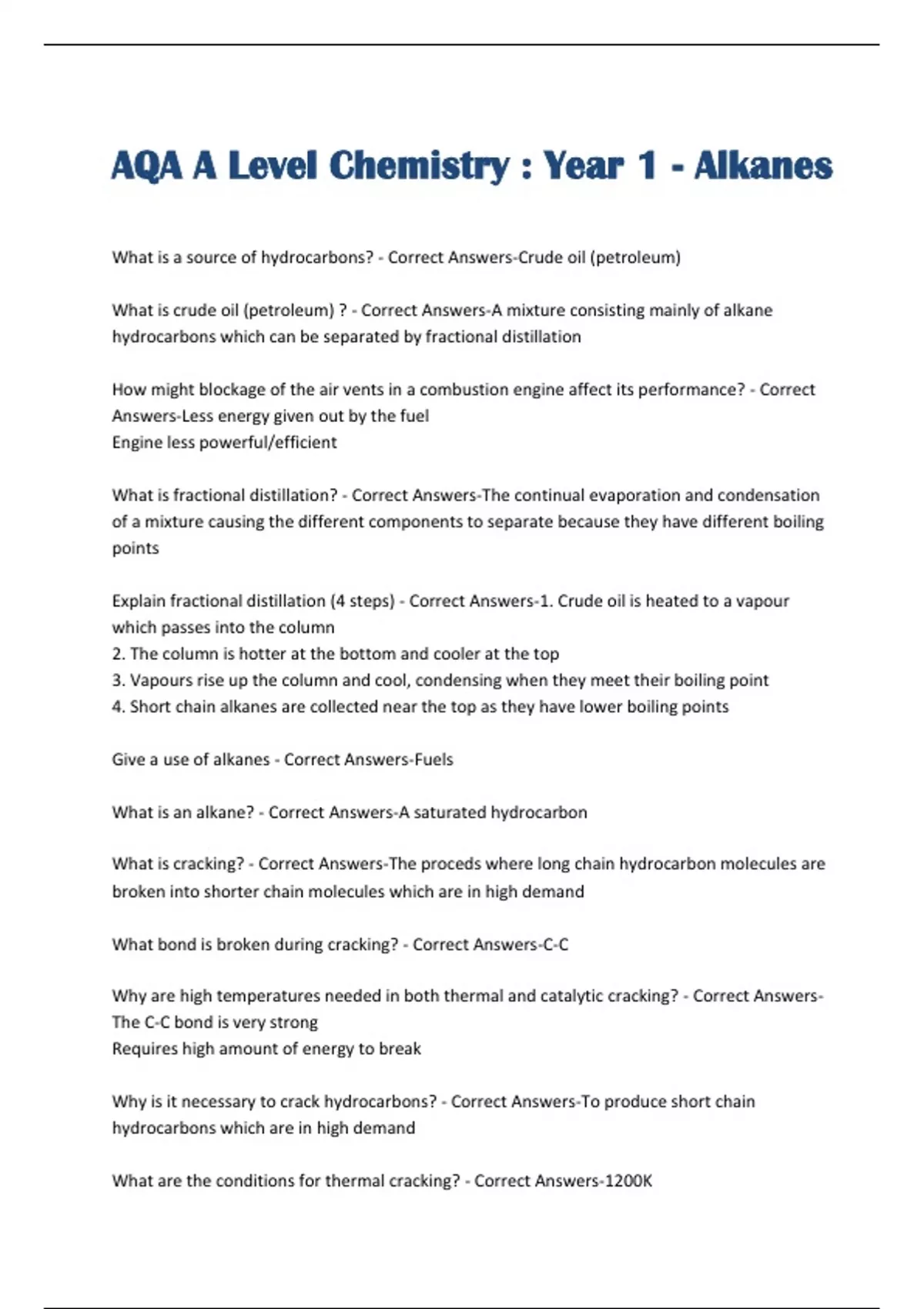AQA A Level Chemistry : Year 1 - Alkanes