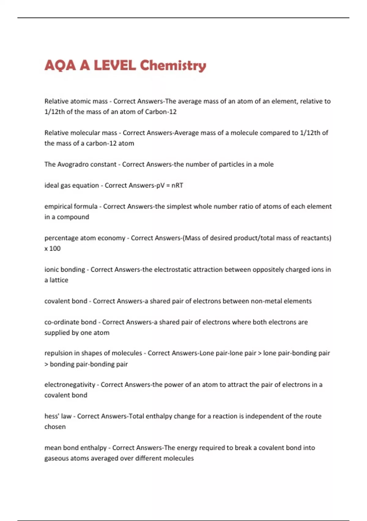Relative atomic mass - Correct Answers-The average mass of an atom of an element, relative to