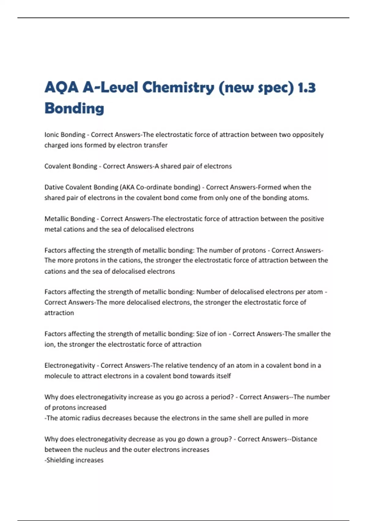 Correct Answers-The more delocalised electrons, the stronger the electrostatic force of