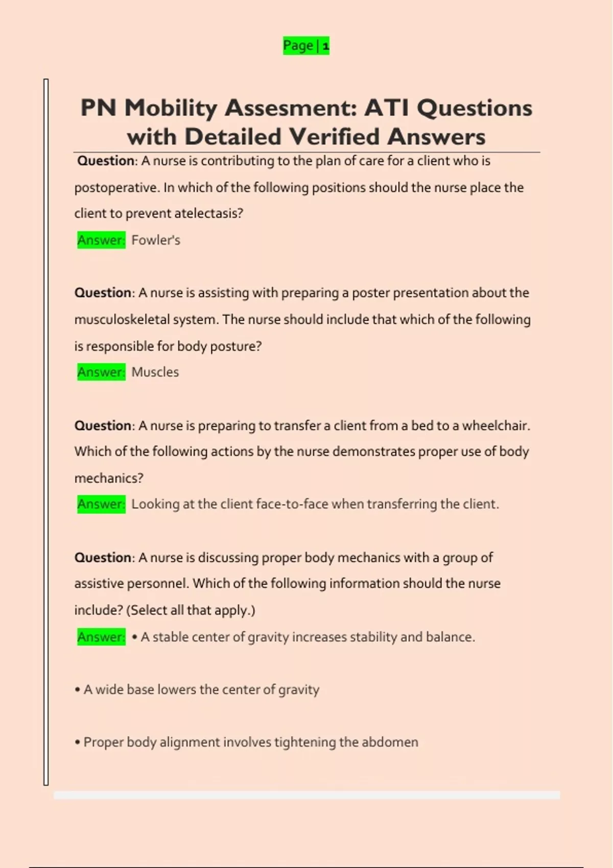 PN Mobility Assesment: ATI Questions