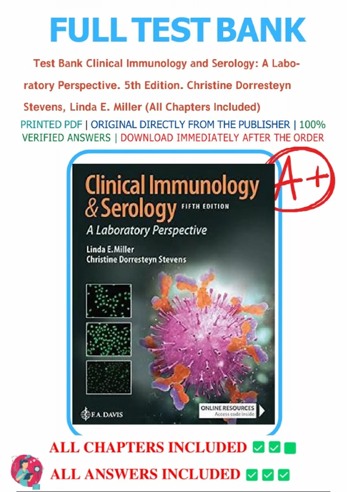 Test Bank Clinical Immunology and Serology: A Laboratory Perspective. 5th Edition. Christine Dorresteyn Stevens, Linda E. Miller.||All chapters included.