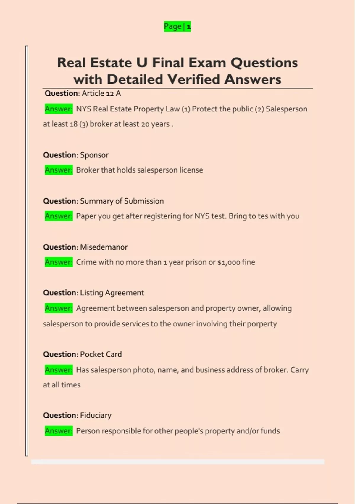Real Estate U Final Exam Questions