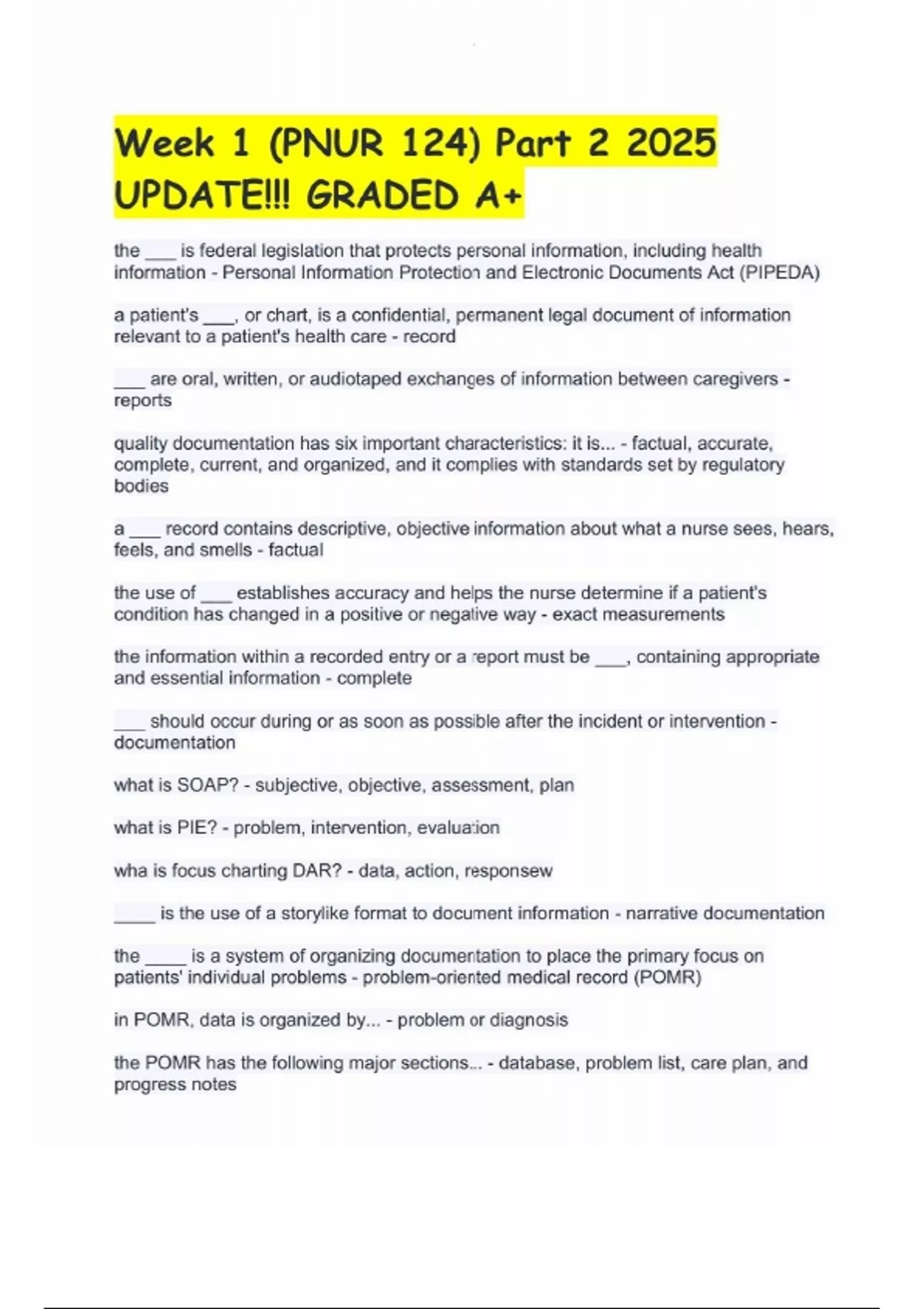 Week 1 (PNUR 124) Part 2 2025 UPDATE!!! GRADED A+ Week 1 (PNUR 124) Part 2 2025 UPDATE!!! GRADED A+