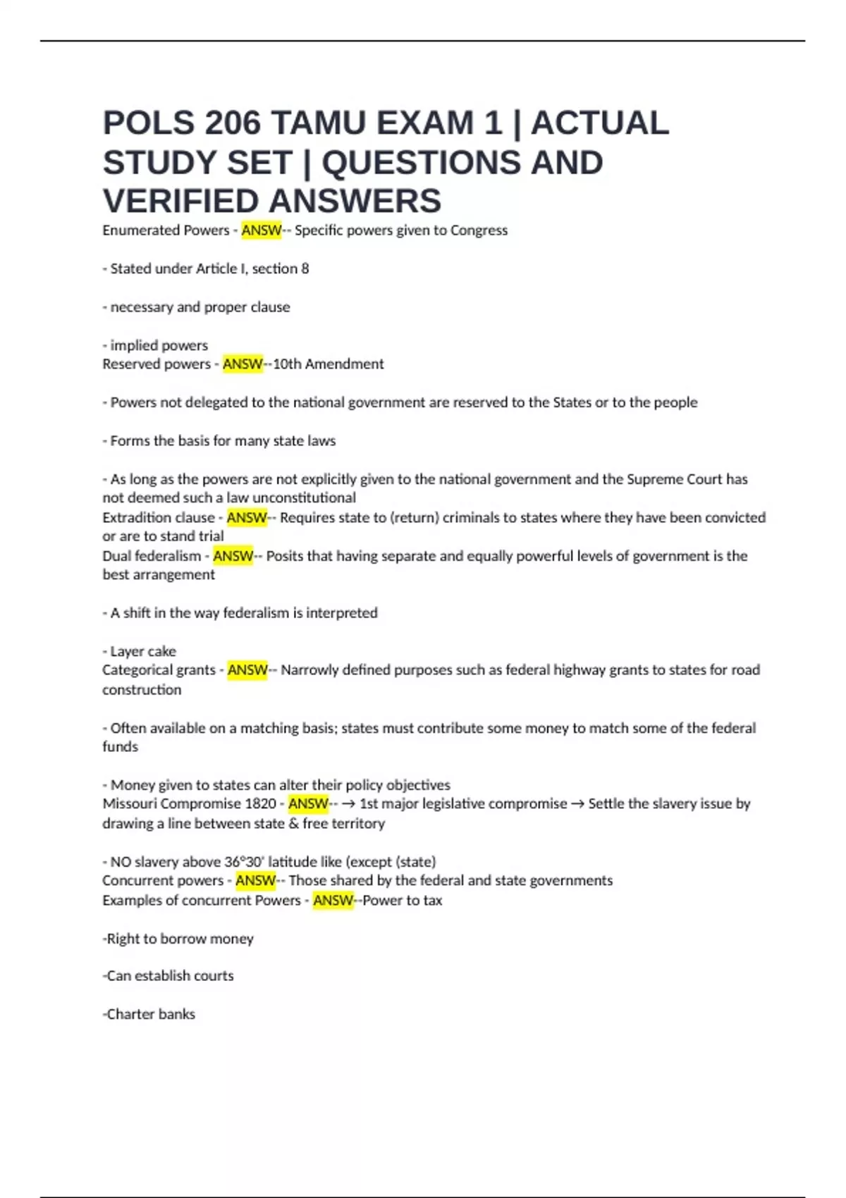 Enumerated Powers - ANSW-- Specific powers given to Congress