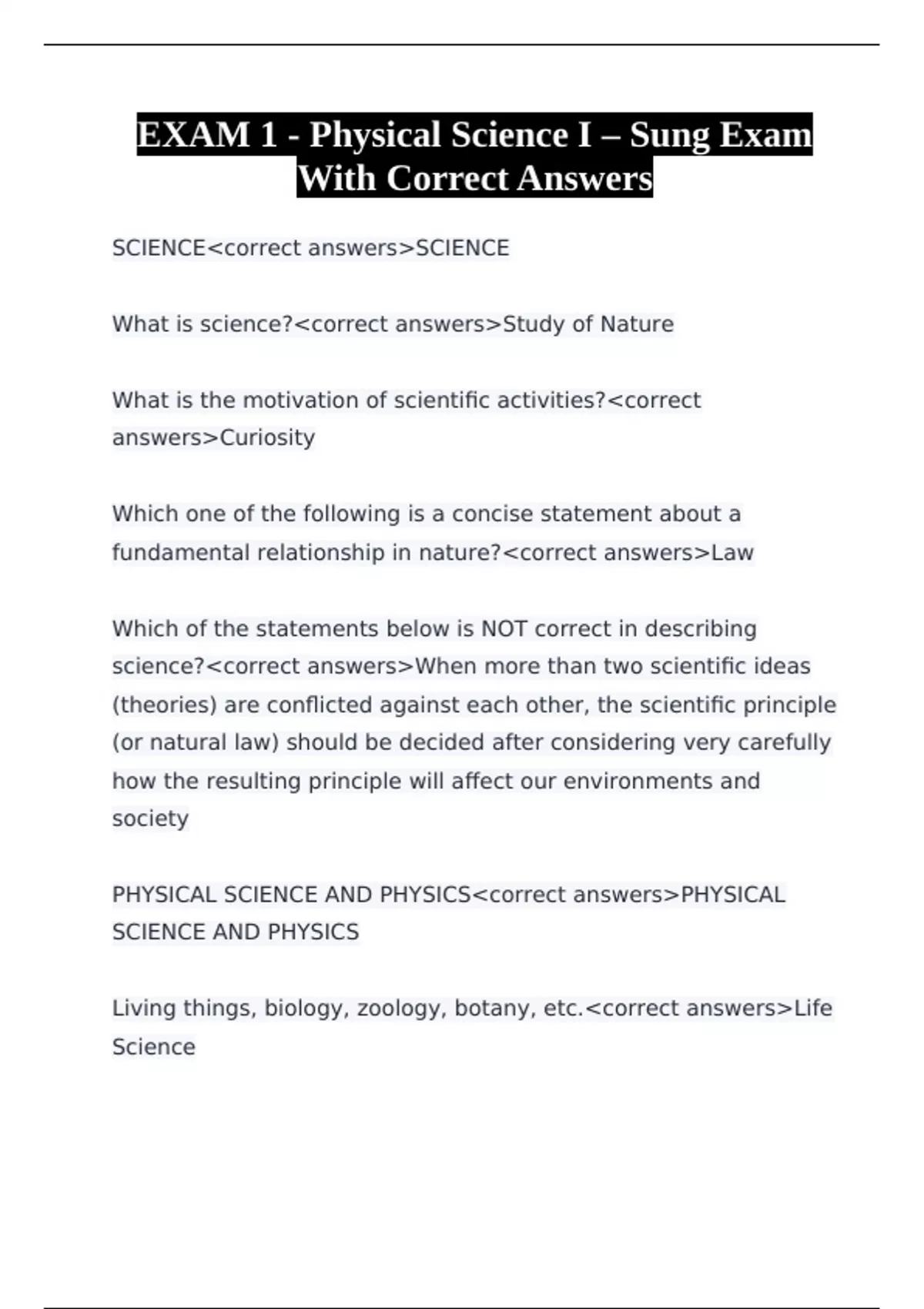 PHYSICAL SCIENCE AND PHYSICS<correct answers>PHYSICAL