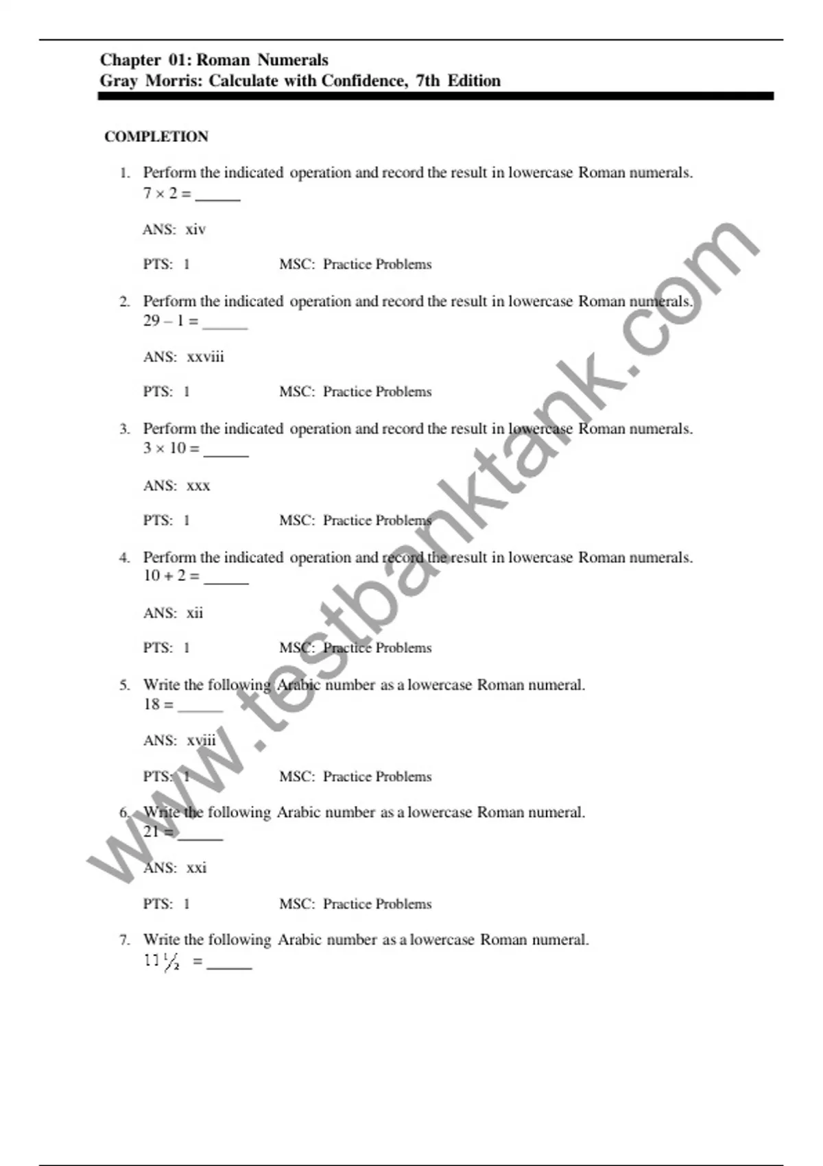3. Perform the indicated operation and record the result in lowercase Roman numerals.