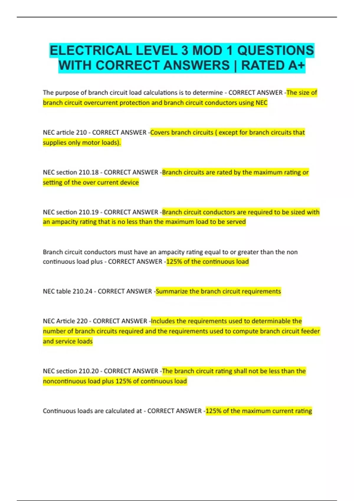 ELECTRICAL LEVEL 3 MOD 1 QUESTIONS WITH CORRECT ANSWERS | RATED A+