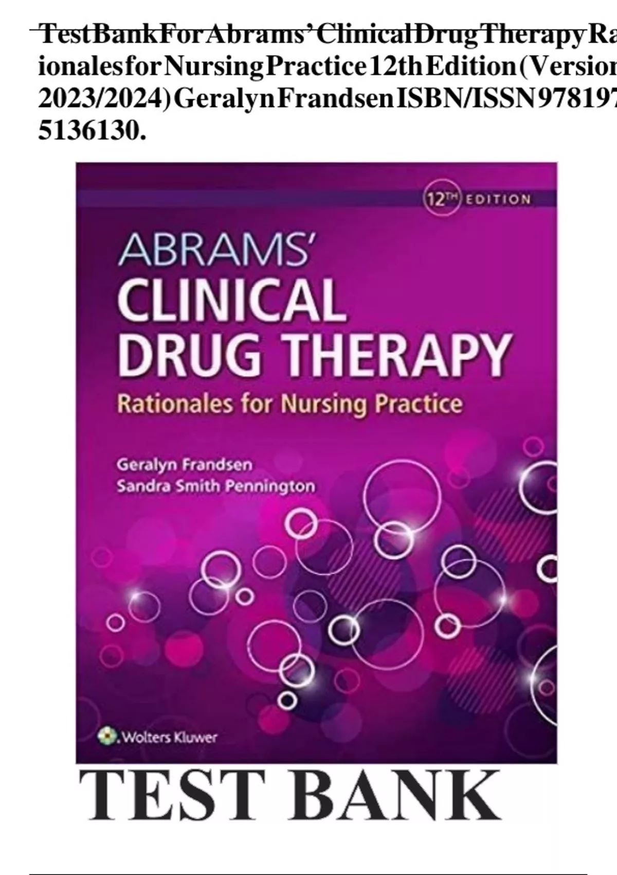 Test BankFor Abrams’ Clinical Drug Therapy Ra