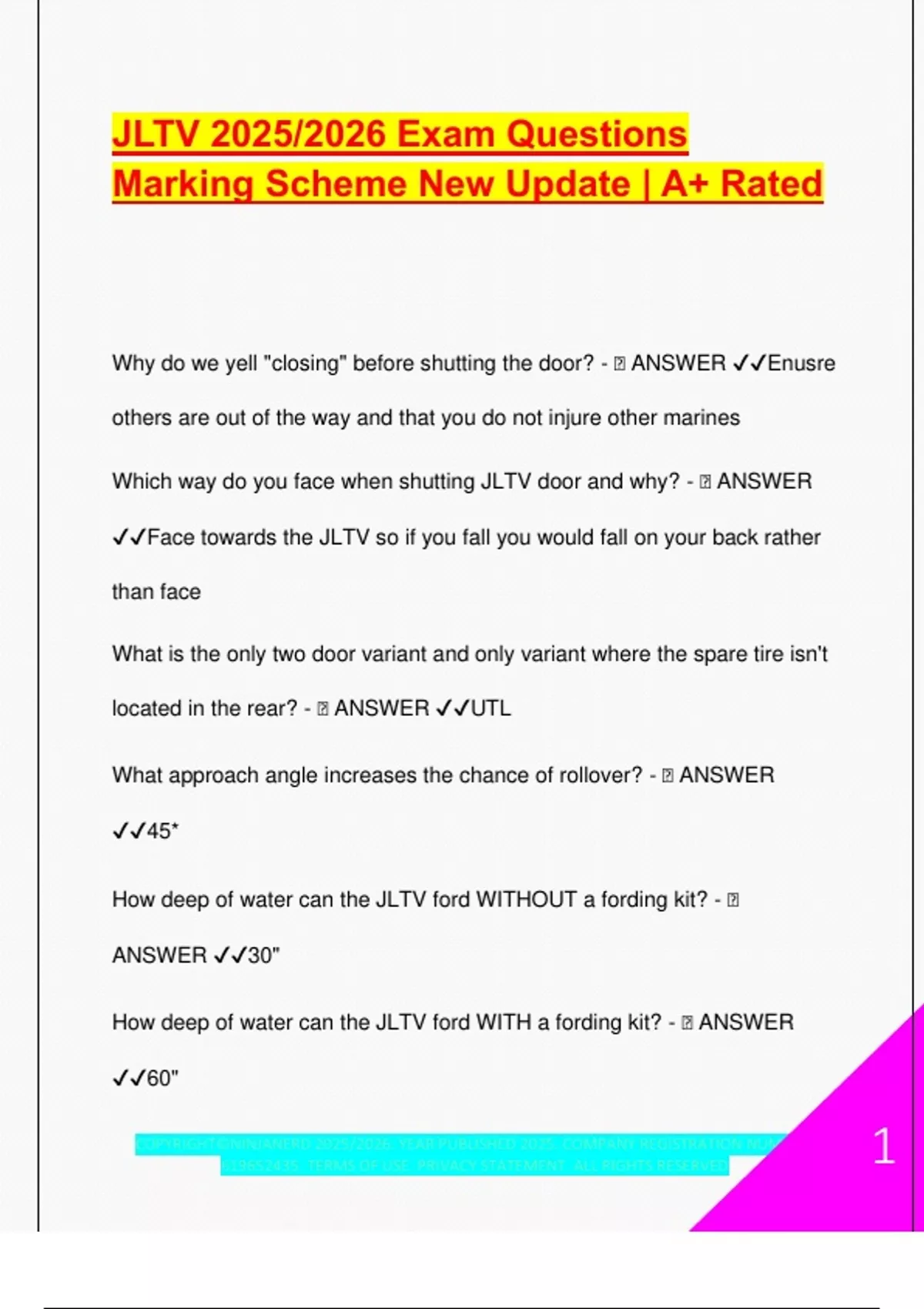 JLTV Operator Exam Prep 2025/2026 – Complete Tactical Vehicle Q&A with Verified Answers
