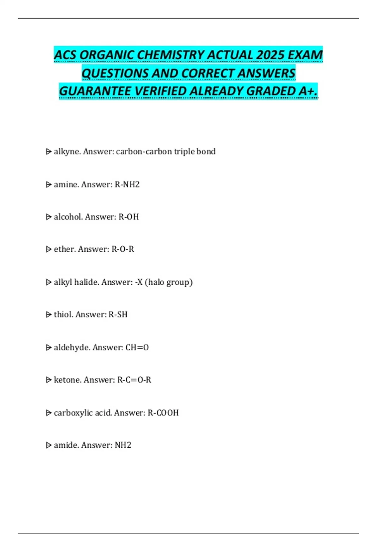 ⩥ carboxylic acid. Answer: R-COOH