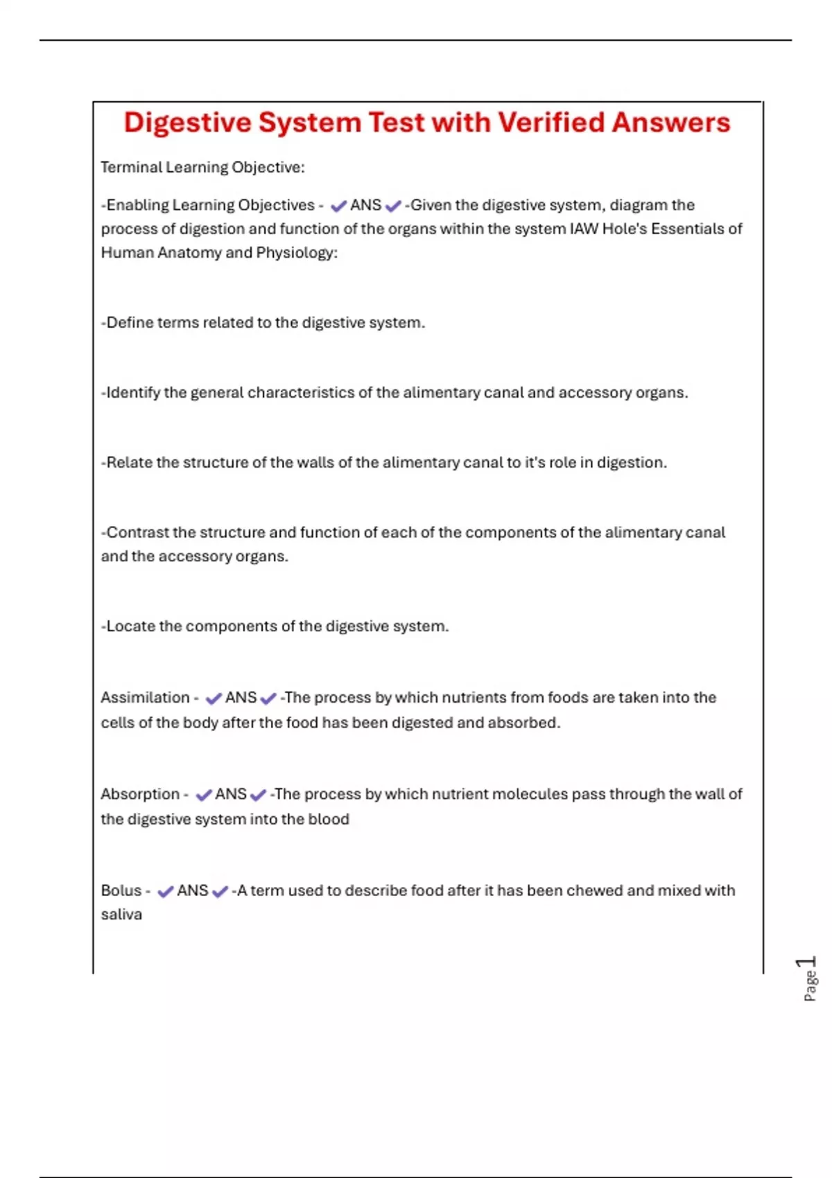 -Enabling Learning Objectives - ANS -Given the digestive system, diagram the