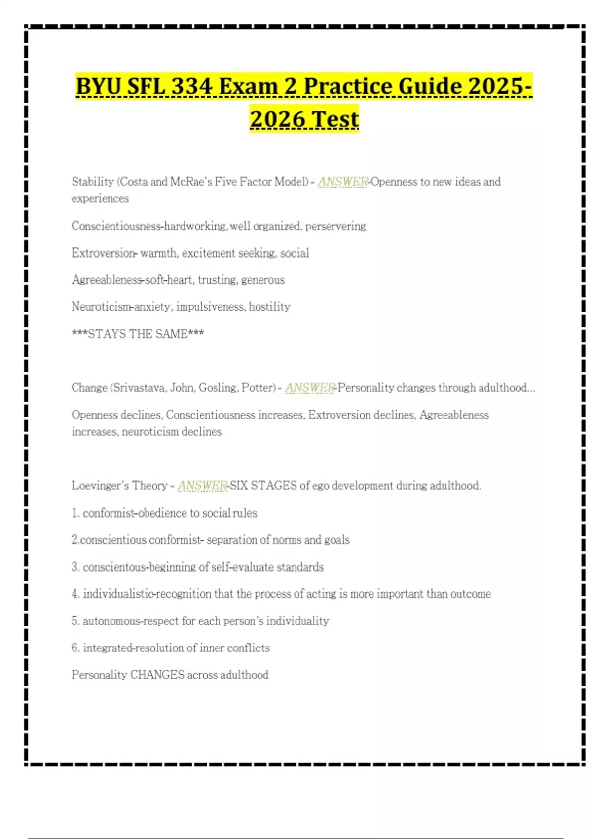 BYU SFL 334 Exam 2 Practice Guide Test