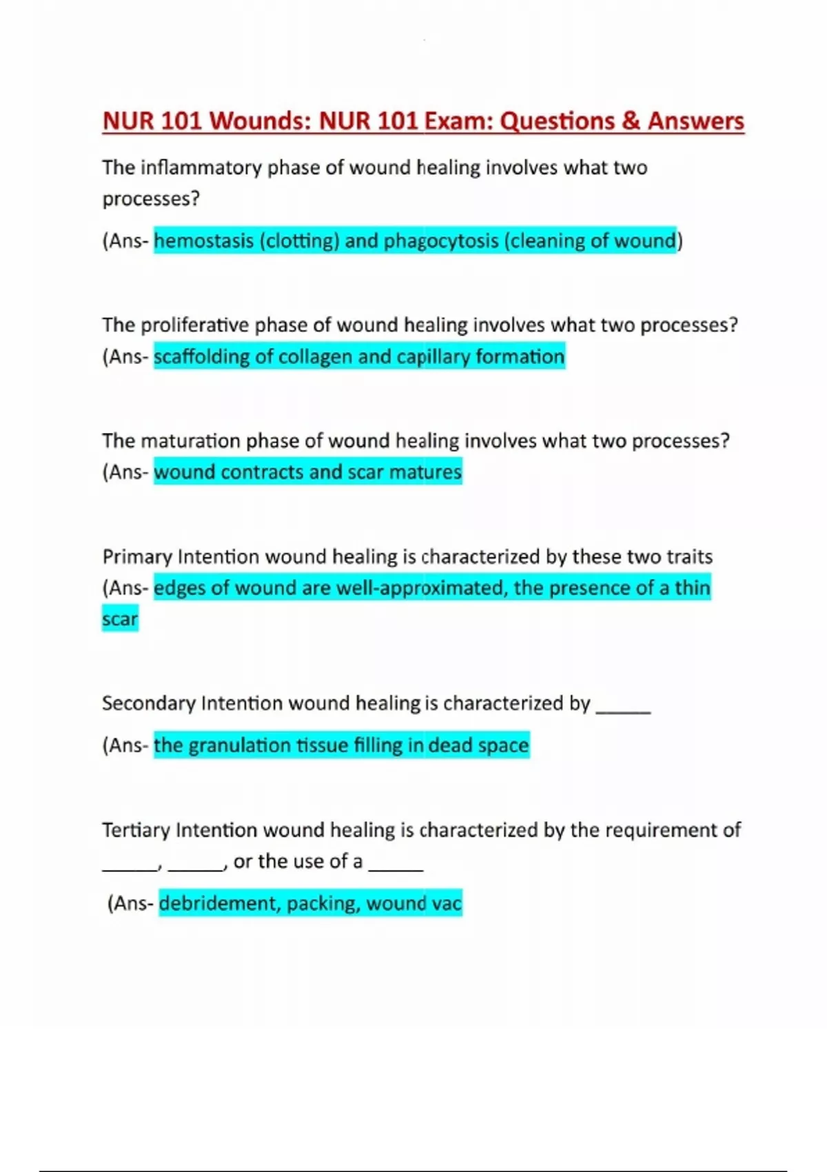 NUR 101 Wounds: NUR 101 Exam: Questions & Answers: Latest Updated Solution