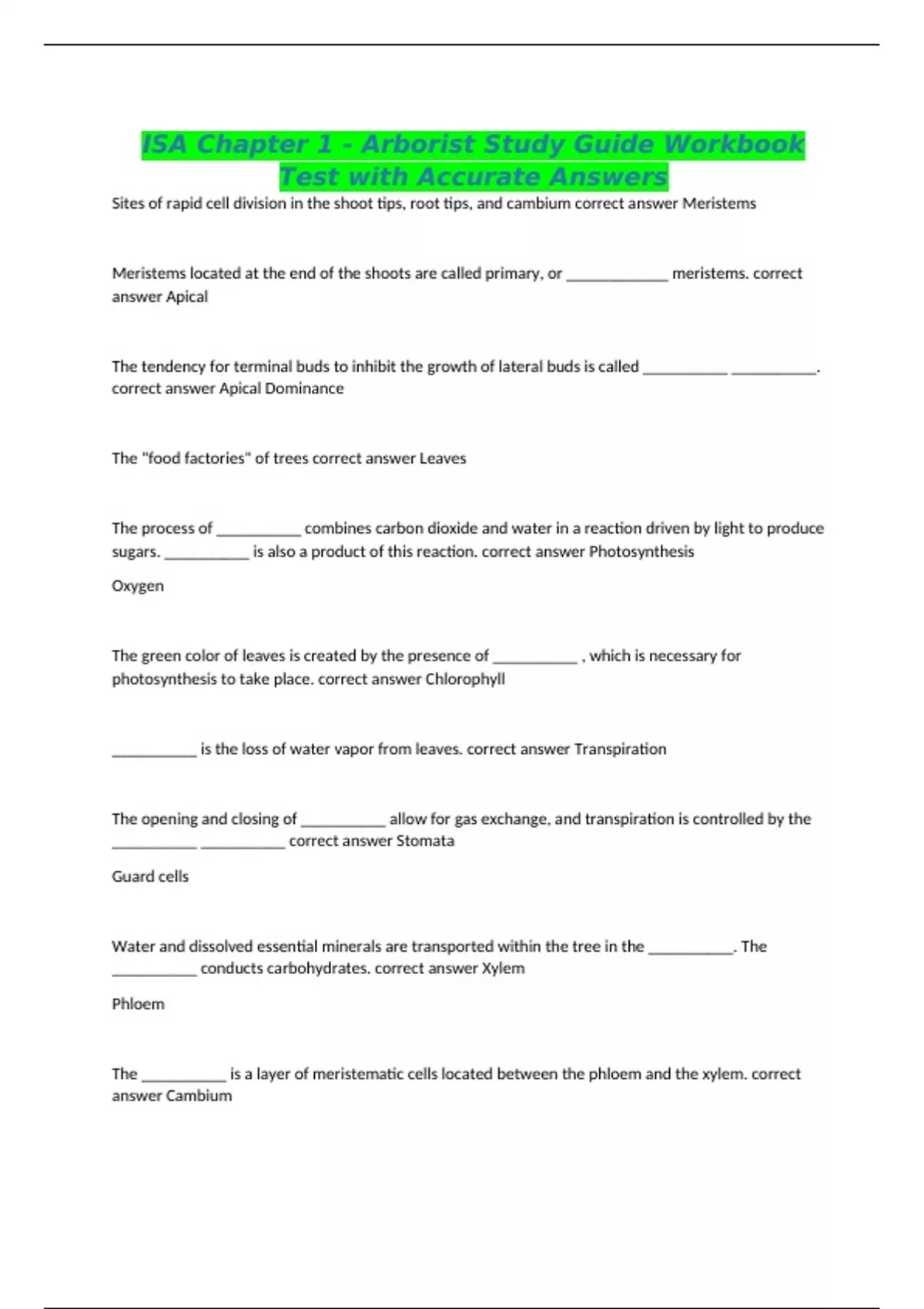 ISA Chapter 1 - Arborist Study Guide Workbook Test with Accurate Answers