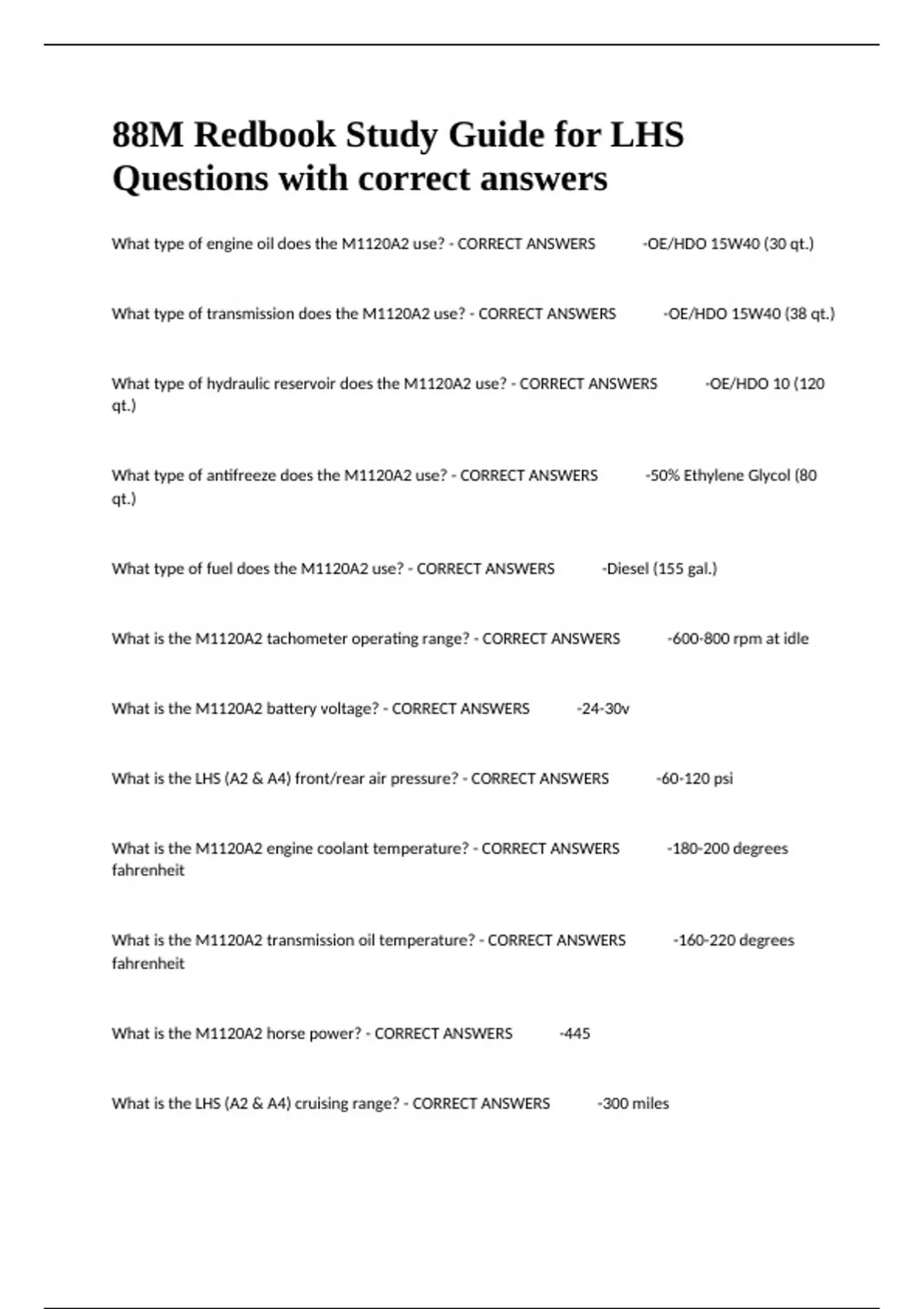 What type of engine oil does the M1120A2 use? - CORRECT ANSWERS ✔✔-OE/HDO 15W40 (30 qt.)