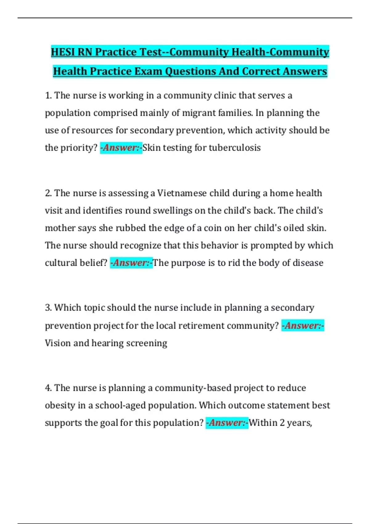 Health Practice Exam Questions And Correct Answers