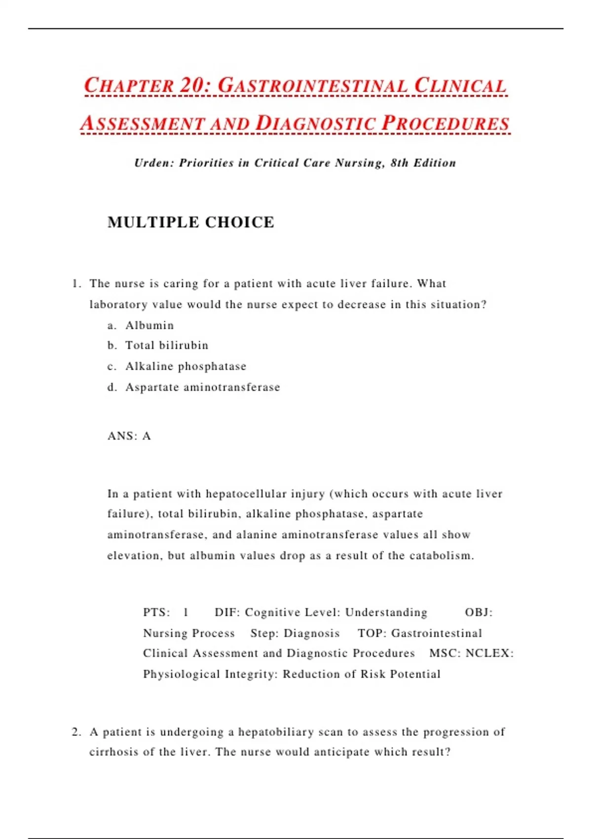 Nursing Process Step: Diagnosis TOP: Gastrointestinal