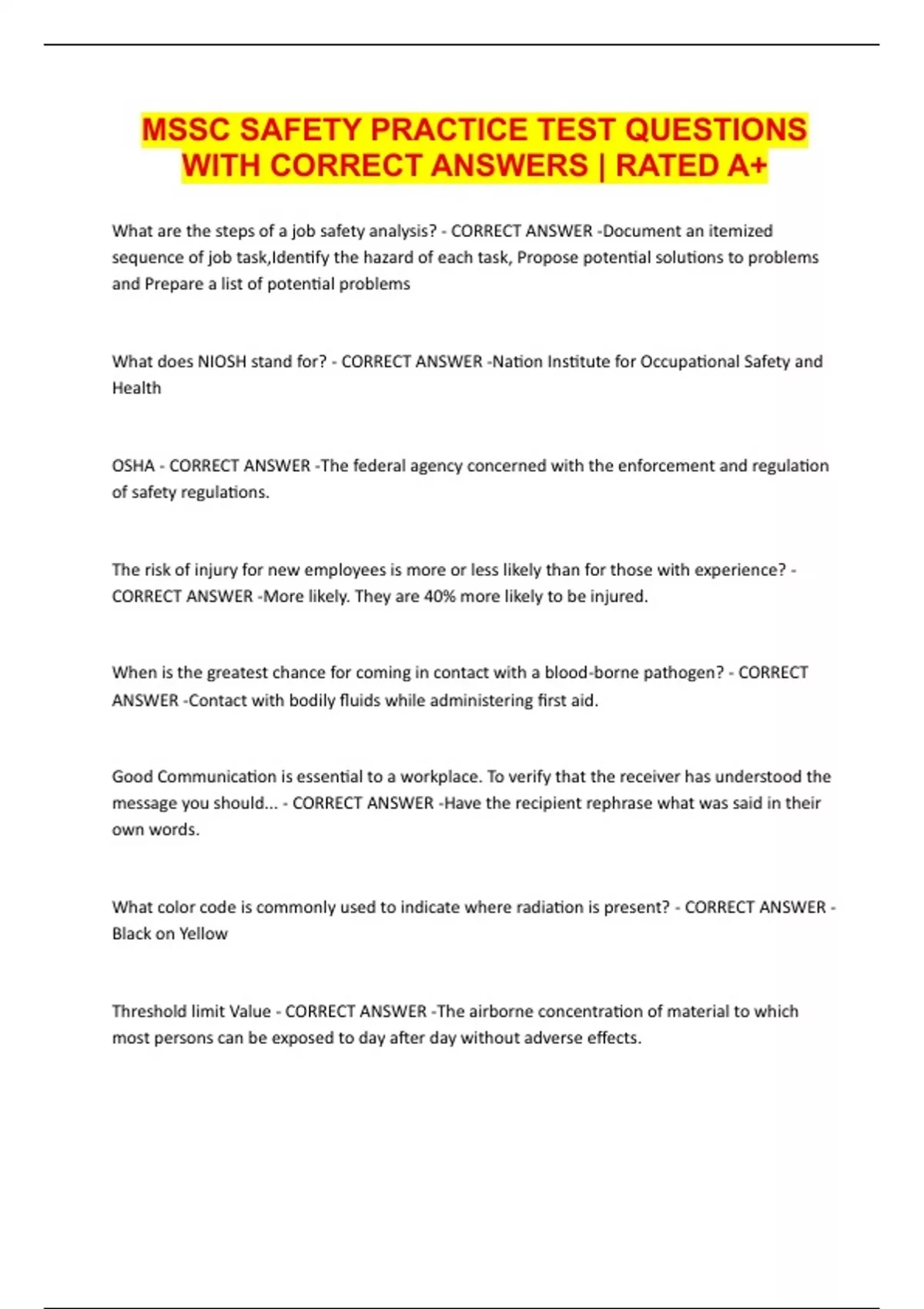 MSSC SAFETY PRACTICE TEST QUESTIONS