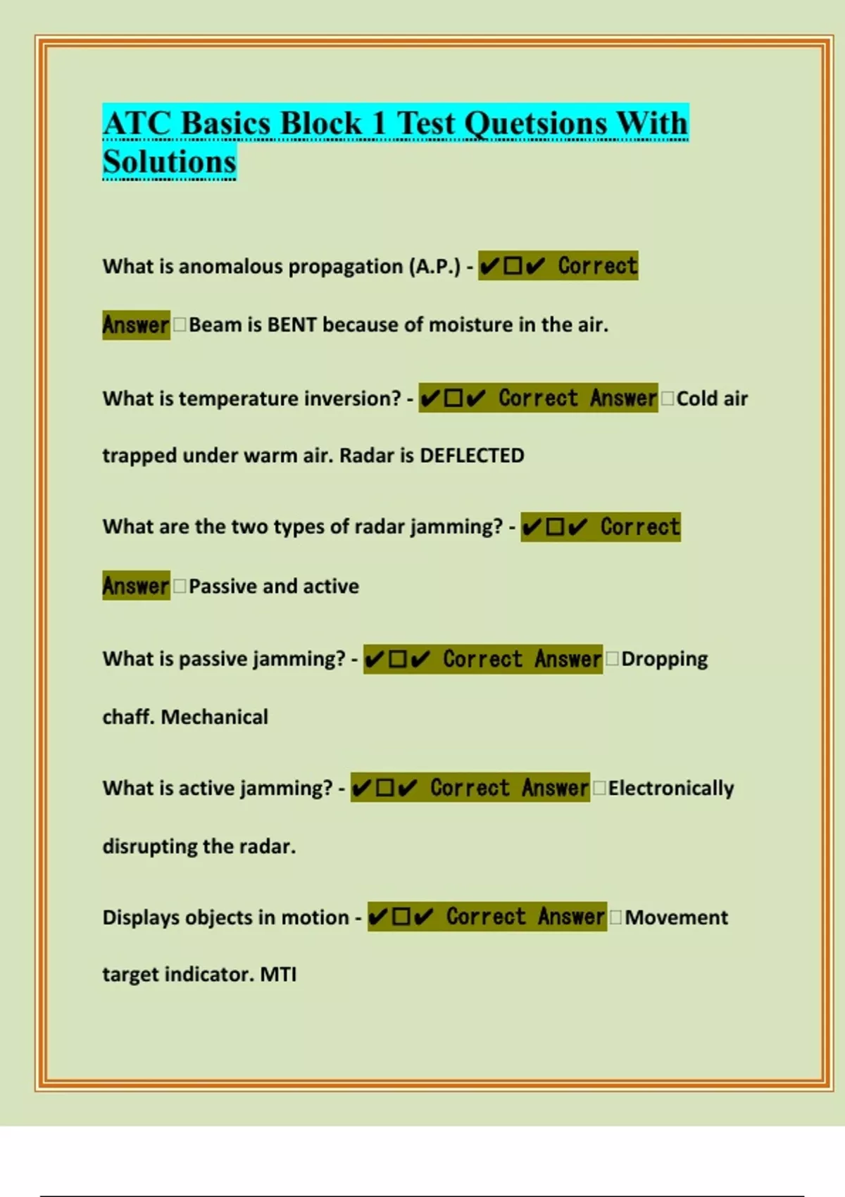 amounts of chaff - ✔️✔ Correct Answer Passive radar jamming