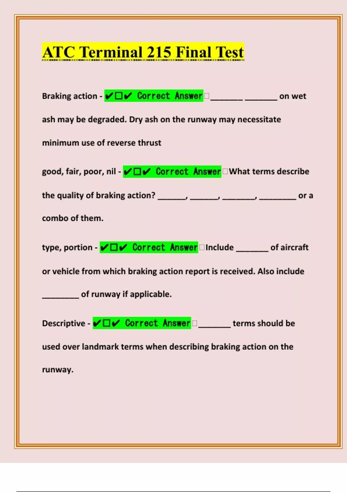ATC Terminal 215 Final Test |Level Up Your Scores: Exam Questions That Deliver Results
