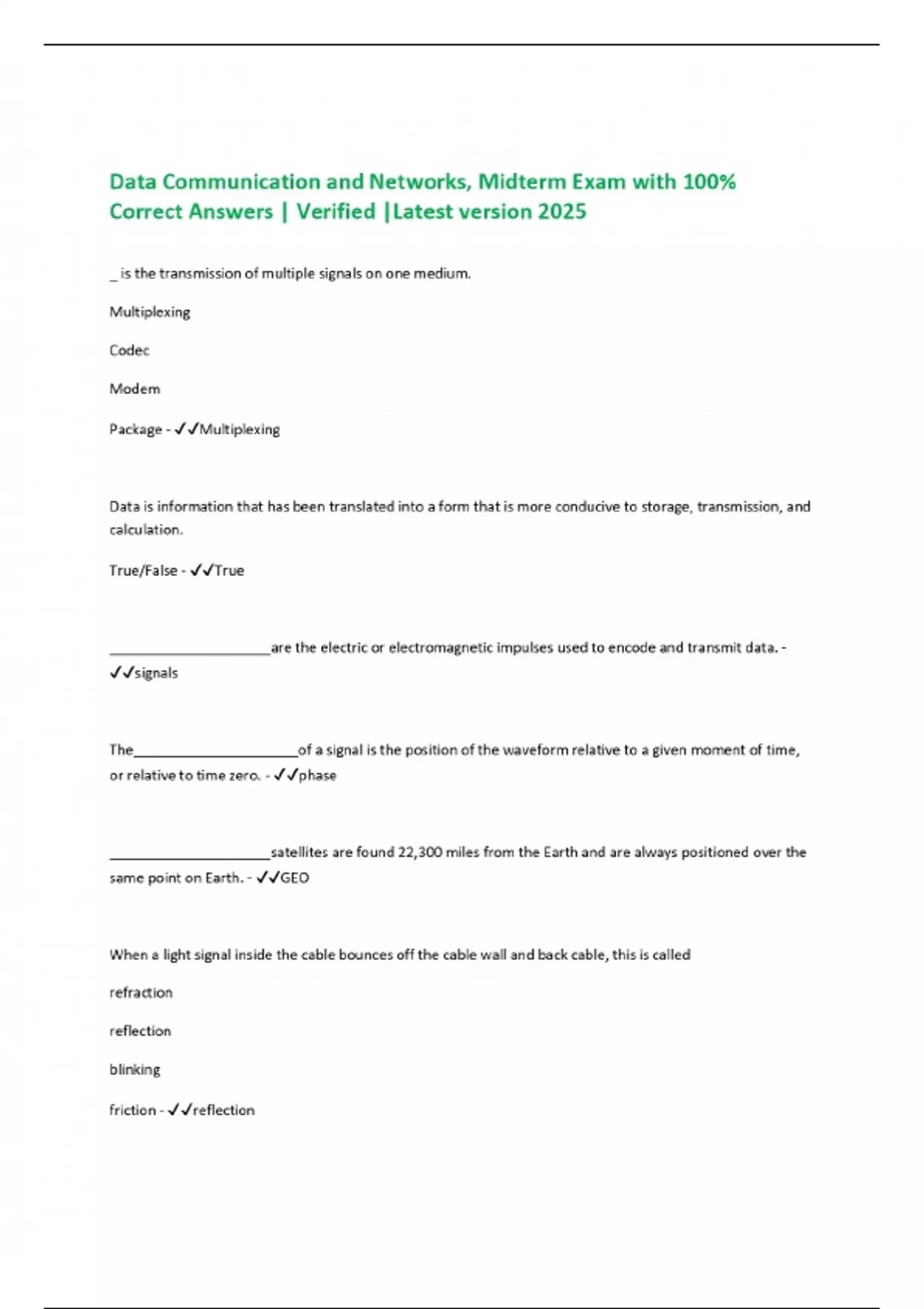 Data Communication and Networks, Midterm Exam with 100% Correct Answers | Verified |Latest version 2025