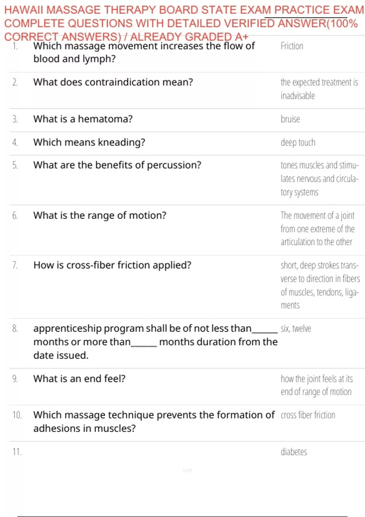 HAWAII MASSAGE THERAPY BOARD STATE EXAM PRACTICE EXAM