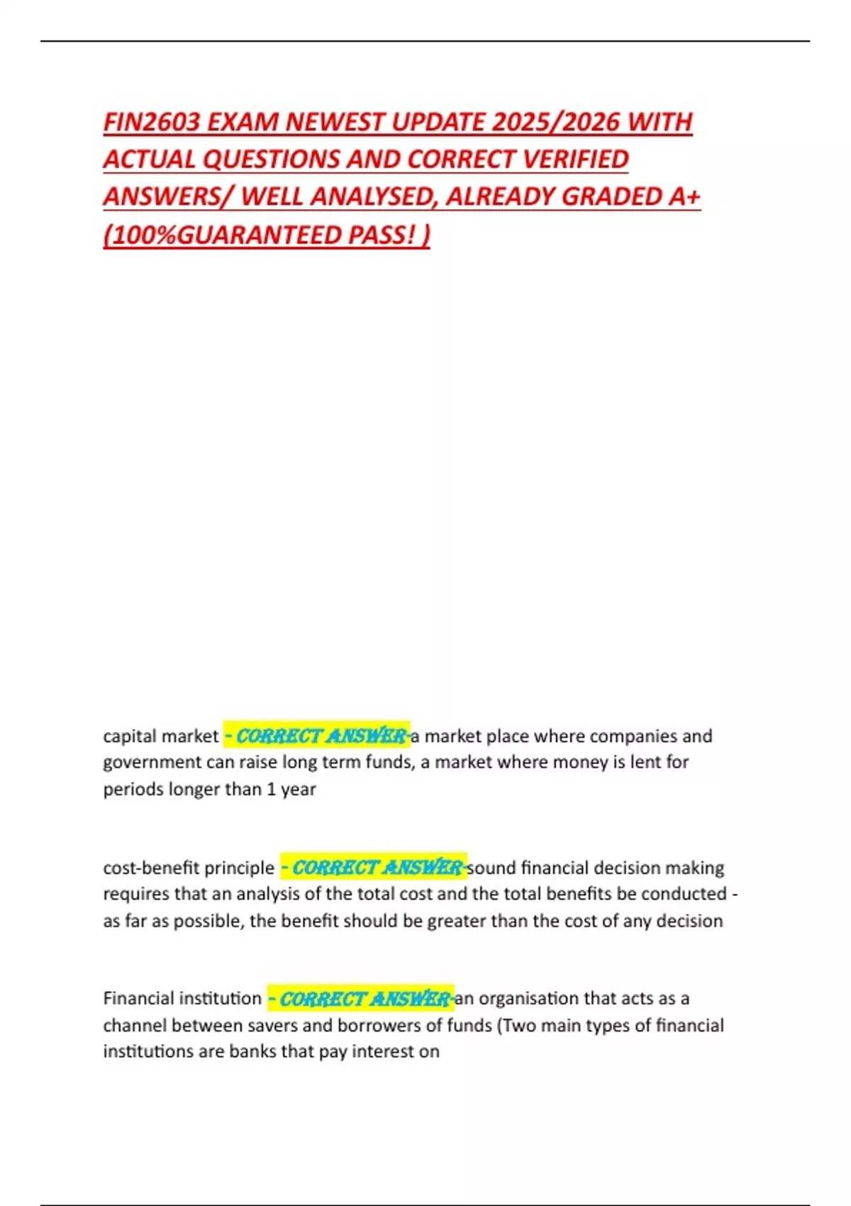 FIN2603 EXAM NEWEST UPDATE 2025/2026 WITH ACTUAL QUESTIONS AND CORRECT VERIFIED ANSWERS/ WELL ANALYSED, ALREADY GRADED A+ (100%GUARANTEED PASS! )