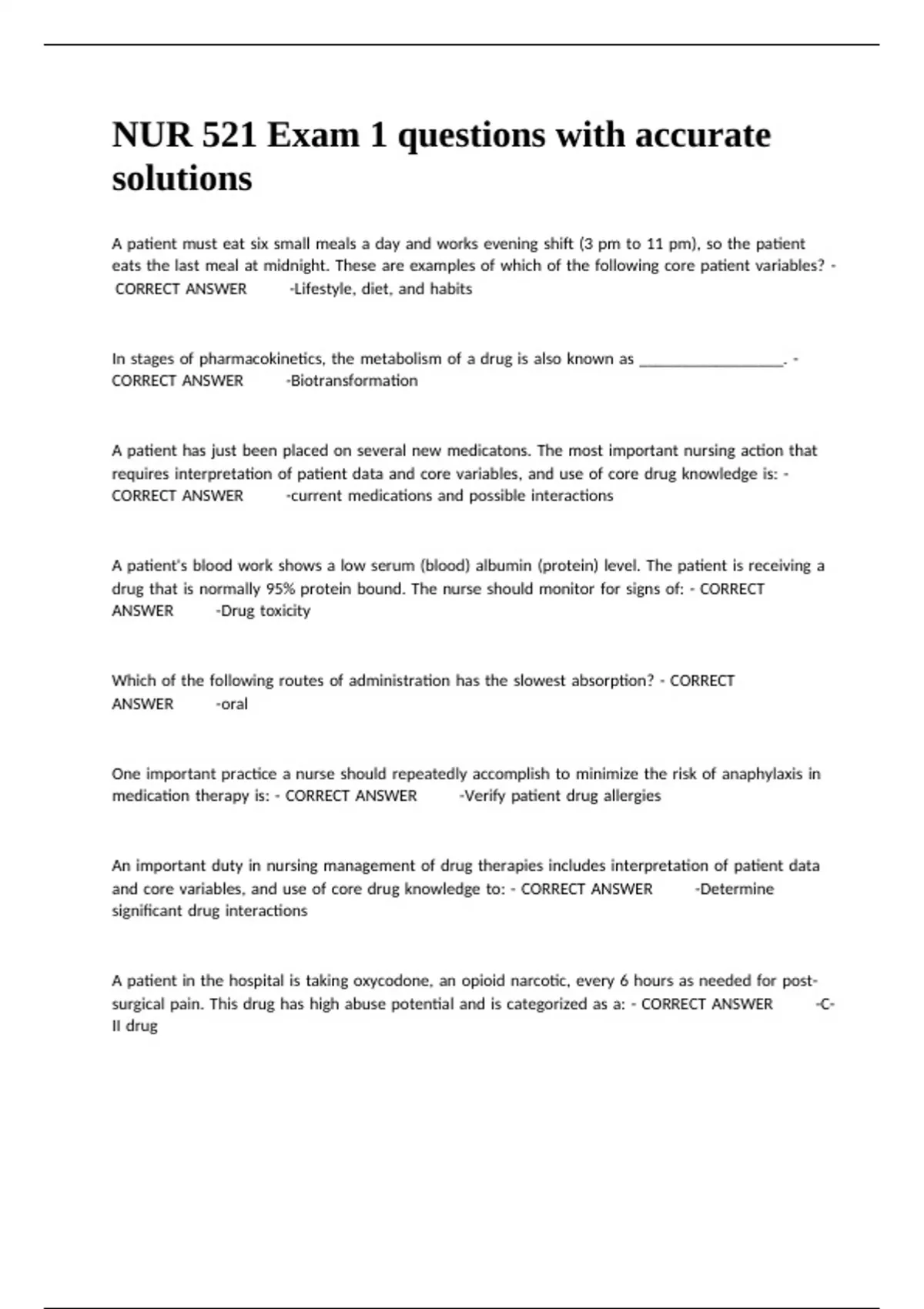CORRECT |ANSWER✔✔-Biotransformation