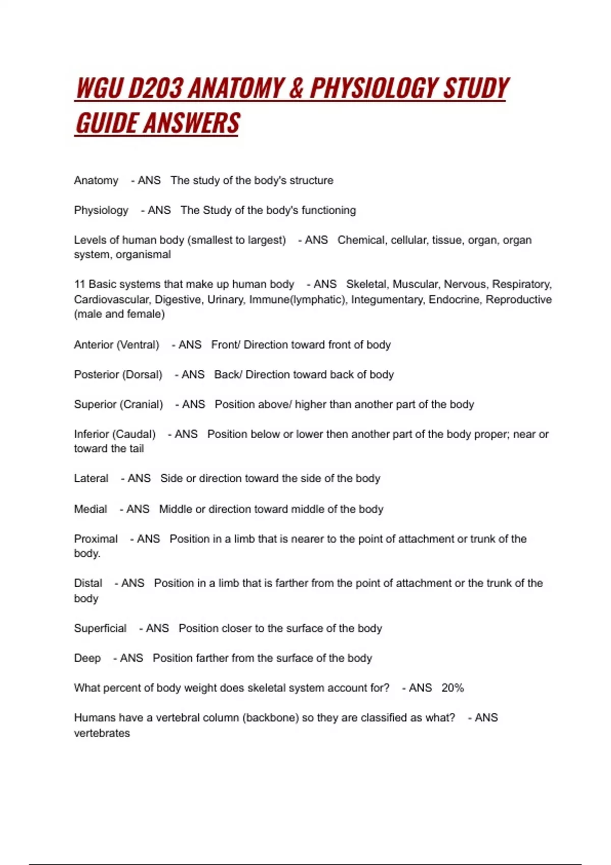 WGU D203 ANATOMY & PHYSIOLOGY STUDY