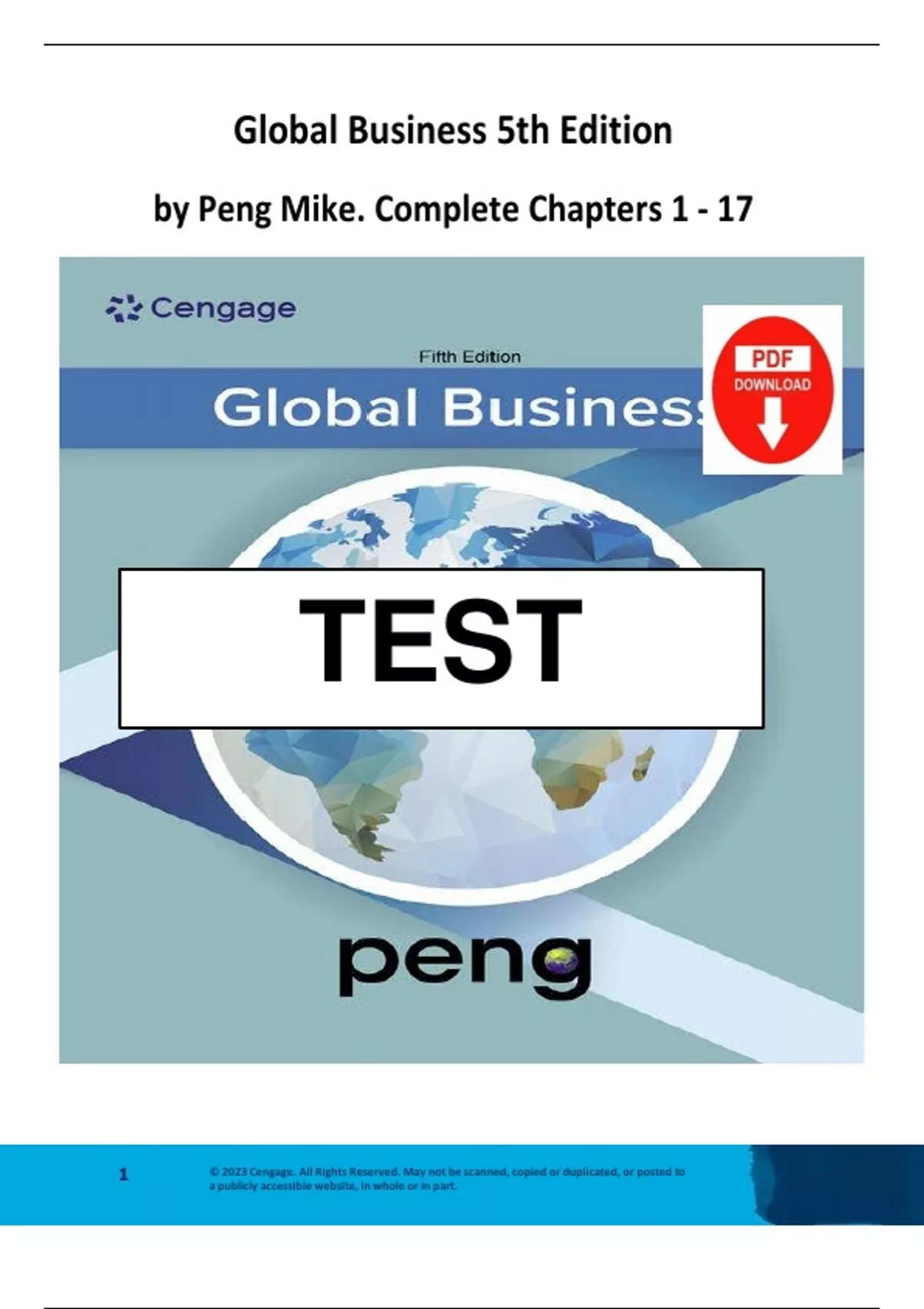 TEST BANK for Global Business 5th Edition by Peng Mike. Complete Chapters 1-17