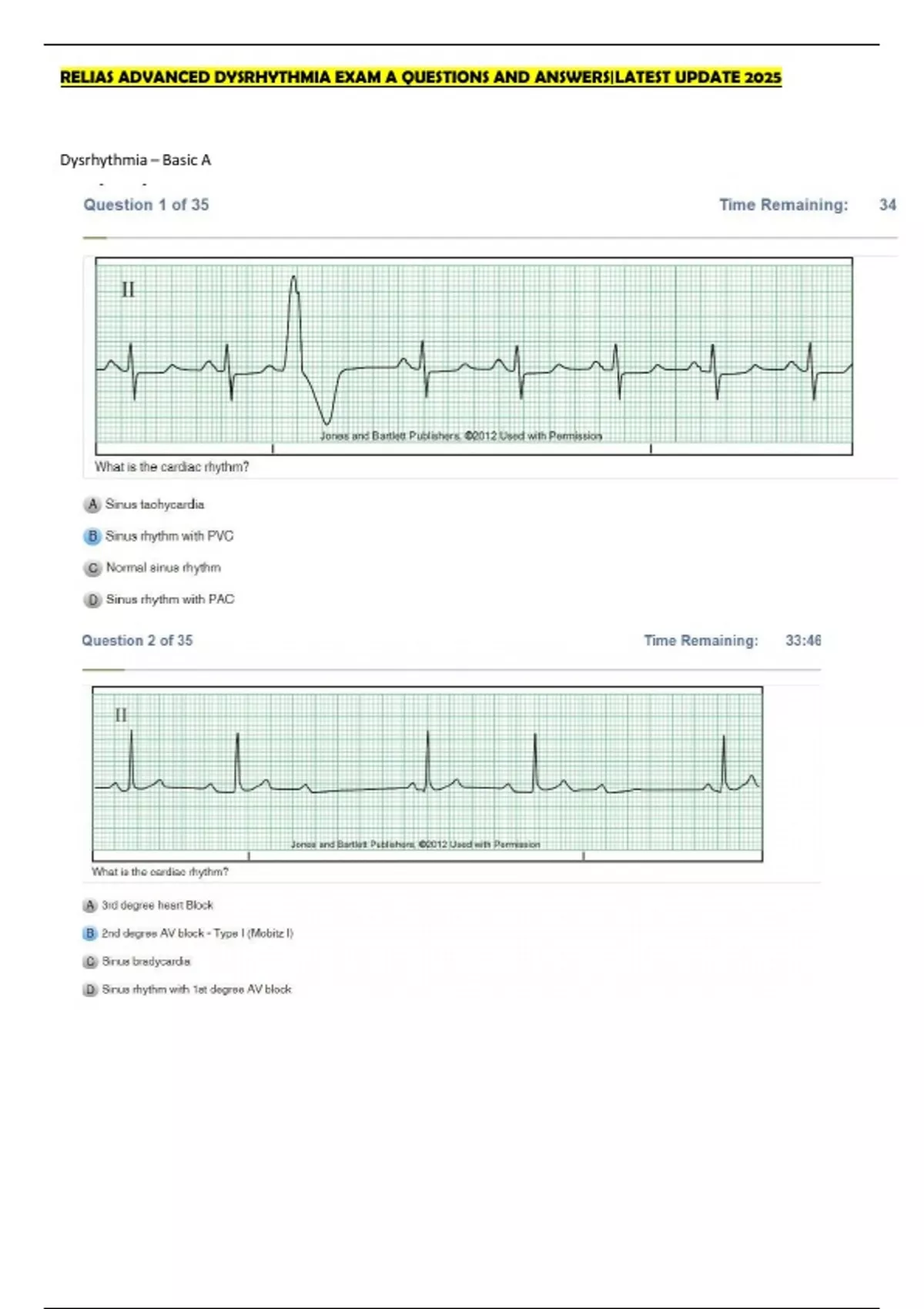 RELIAS ADVANCED DYSRHYTHMIA EXAM A QUESTIONS AND ANSWERS|LATEST UPDATE 2025 Dysrhythmia – Basic A RELIAS ADVANCED DYSRHYTHMIA EXAM A
