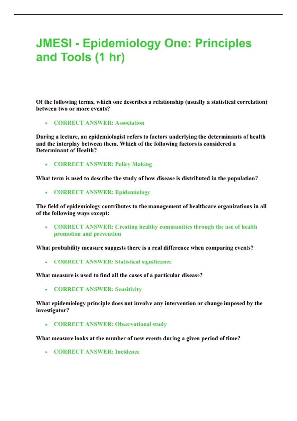 JMESI - Epidemiology One: Principles and Tools (1 hr) Actual questions and answers 100% correct