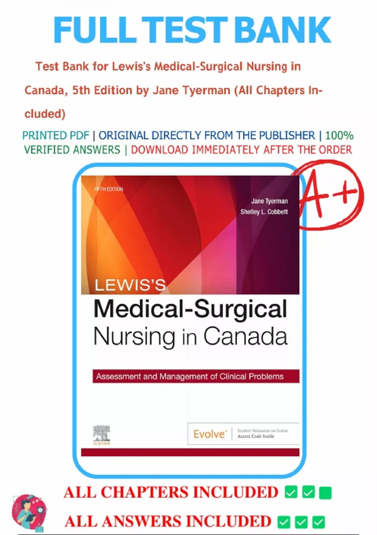 Test Bank for Lewis's Medical-Surgical Nursing in Canada, 5th Edition by Jane Tyerman.||All chapters 1-72 included.