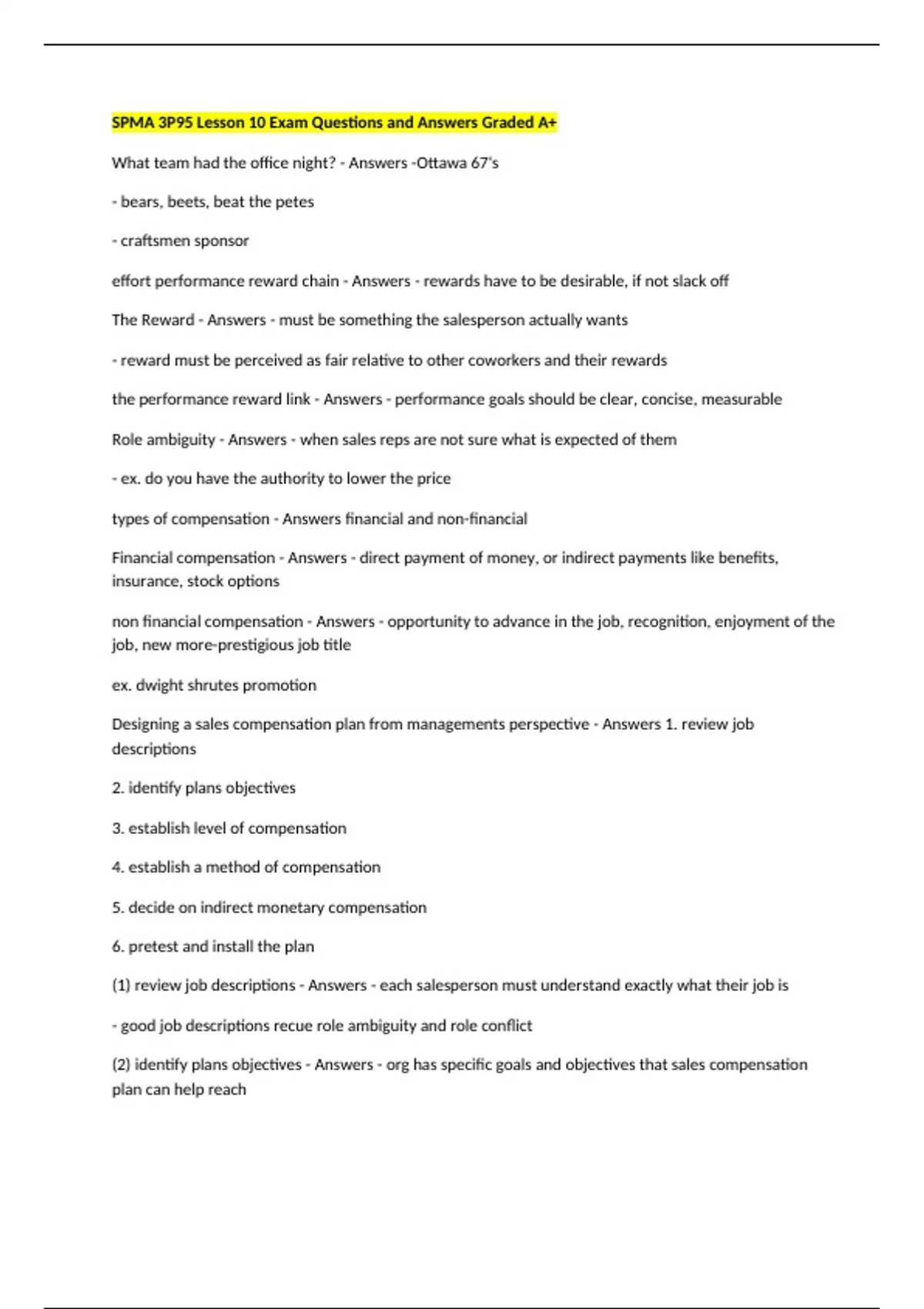 Designing a sales compensation plan from managements perspective - Answers 1. review job