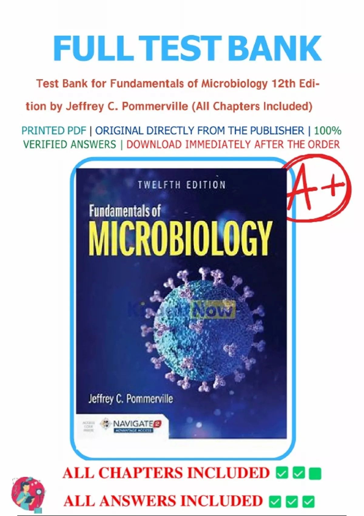 Test Bank for Fundamentals of Microbiology 12th Edition by Jeffrey C. Pommerville.||All chapters included.