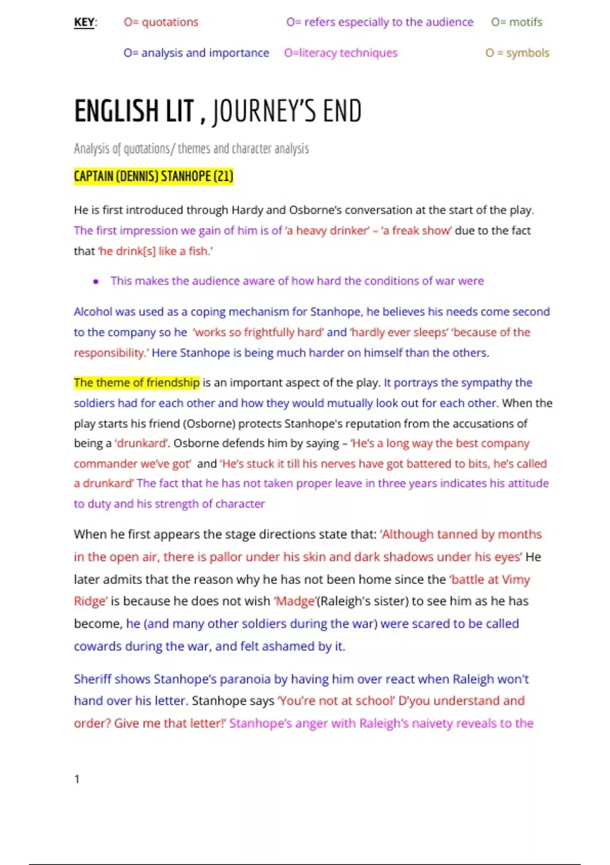 A* English Literatures full summary with quotes of Journeys End