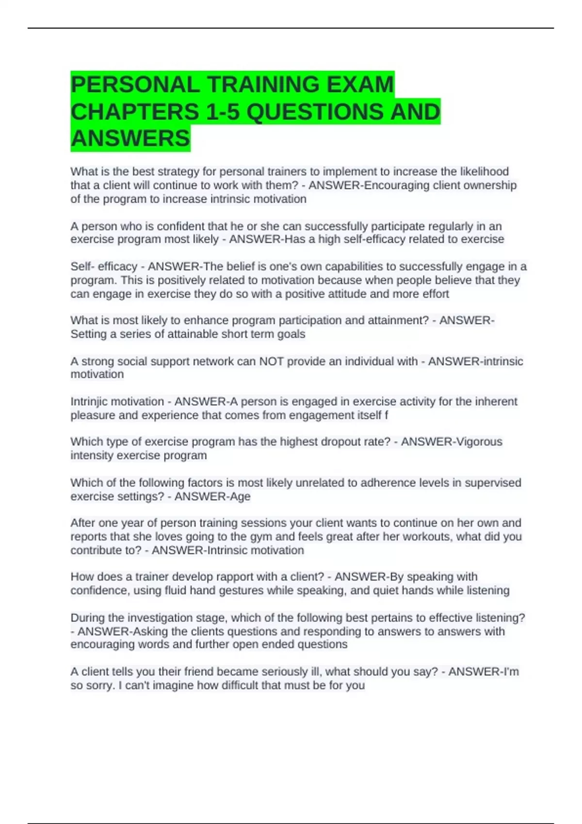 PERSONAL TRAINING EXAM CHAPTERS 1-5 QUESTIONS AND ANSWERS
