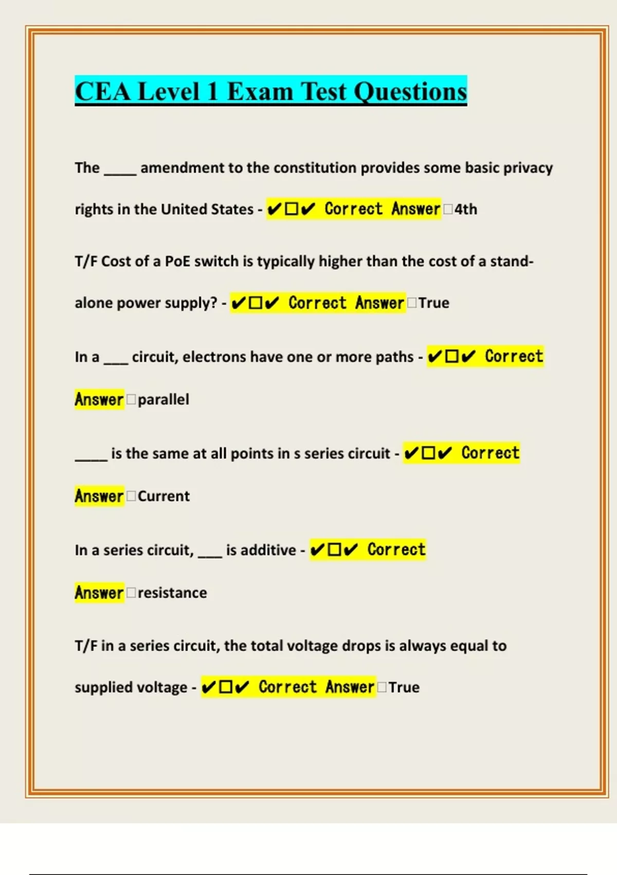 CEA Level 1 Exam Test Questions
