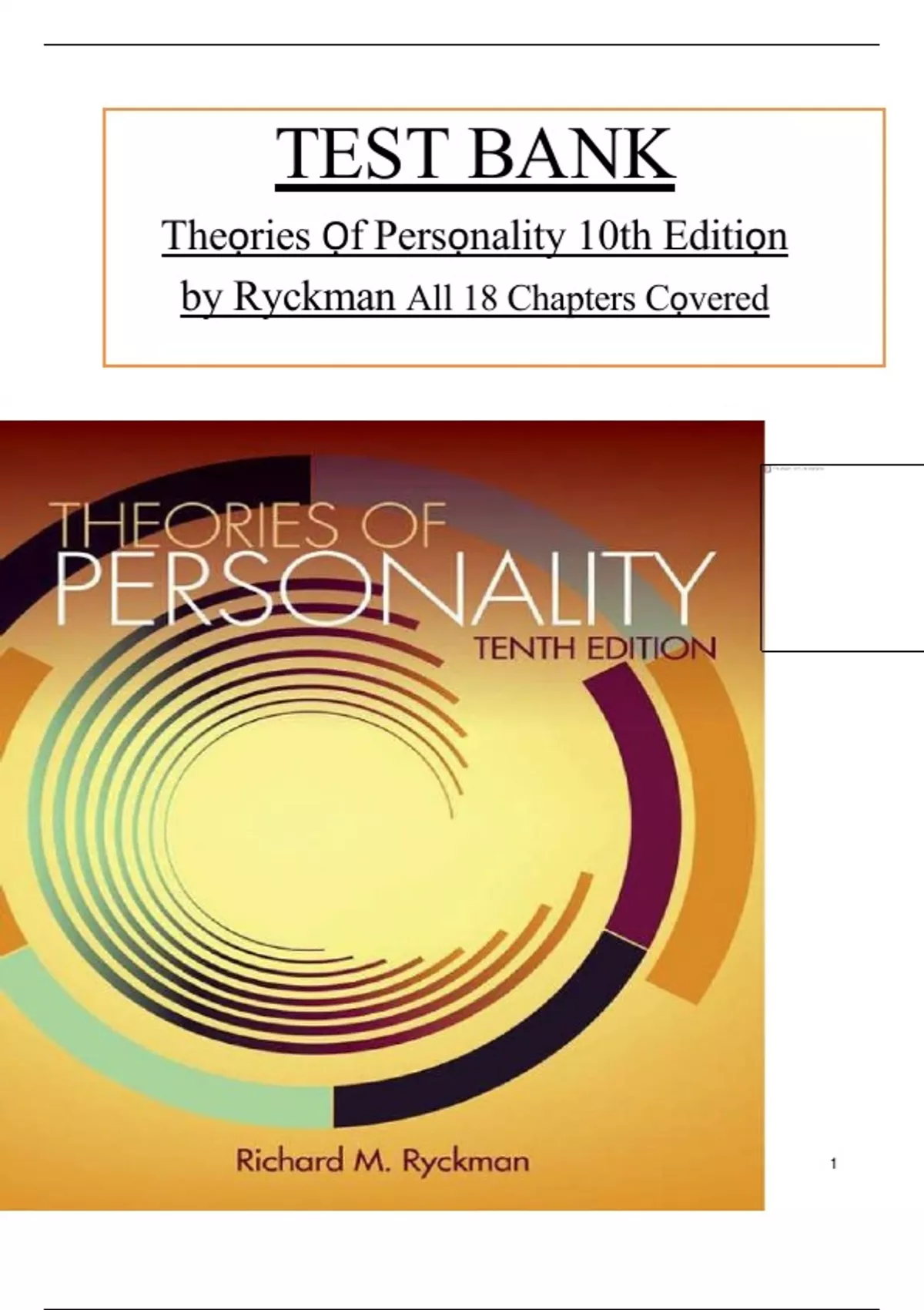 Test bank for Theories of personality 10th edition by Richard M. Ryckman All Chapters 1-18 Fully Covered With Questions And Verified Solutions.