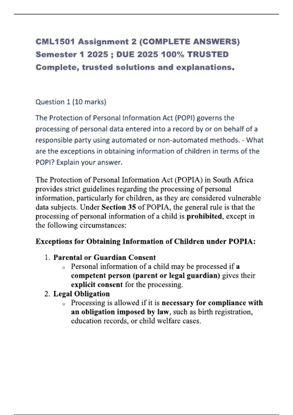 CML1501 Assignment 2 (COMPLETE ANSWERS) Semester 1 2025 - DUE 2025