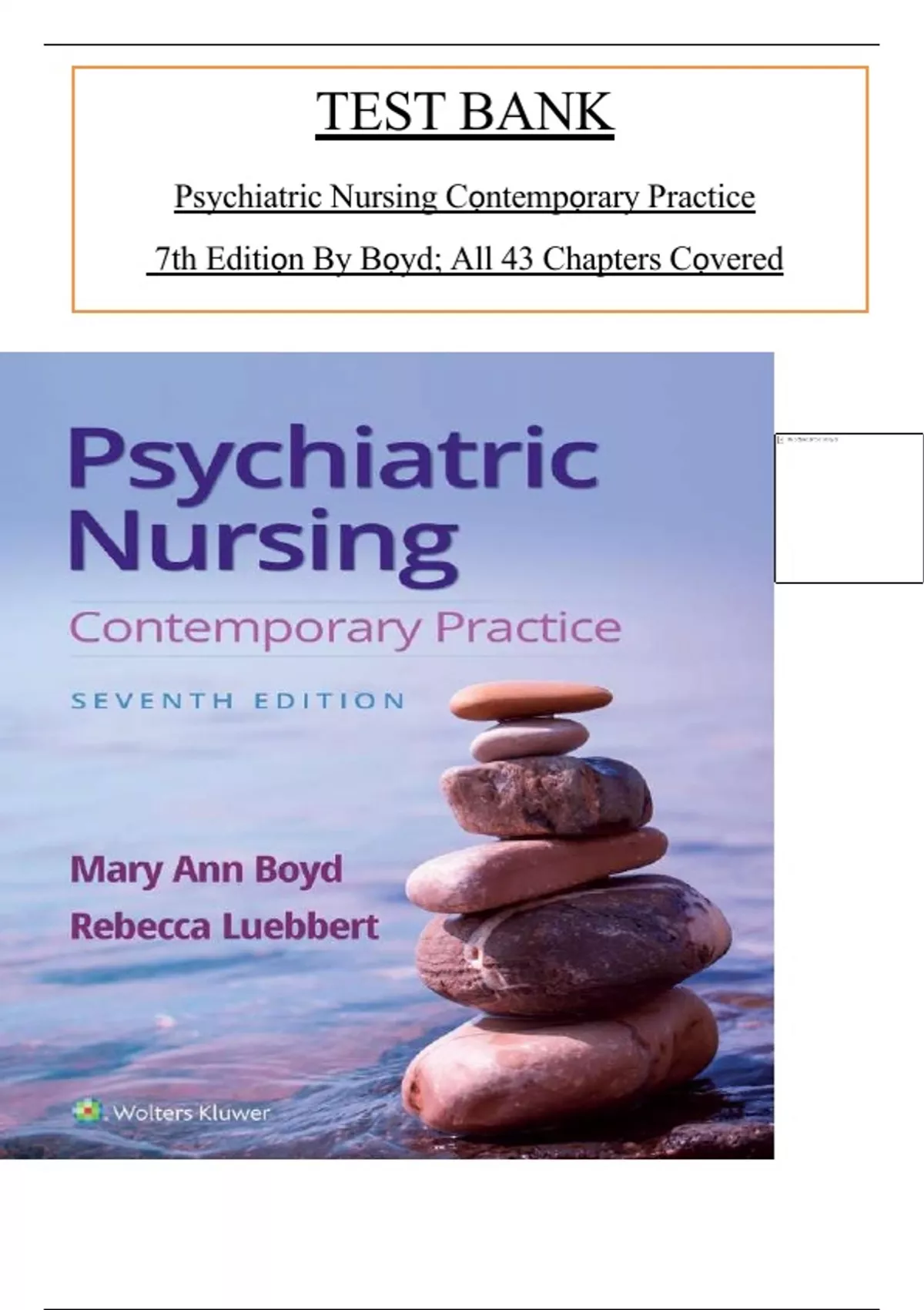 , Test Bank For Psychiatric Nursing Contemporary Practice 7th Edition By Mary Ann Boyd; Rebecca Luebbert
