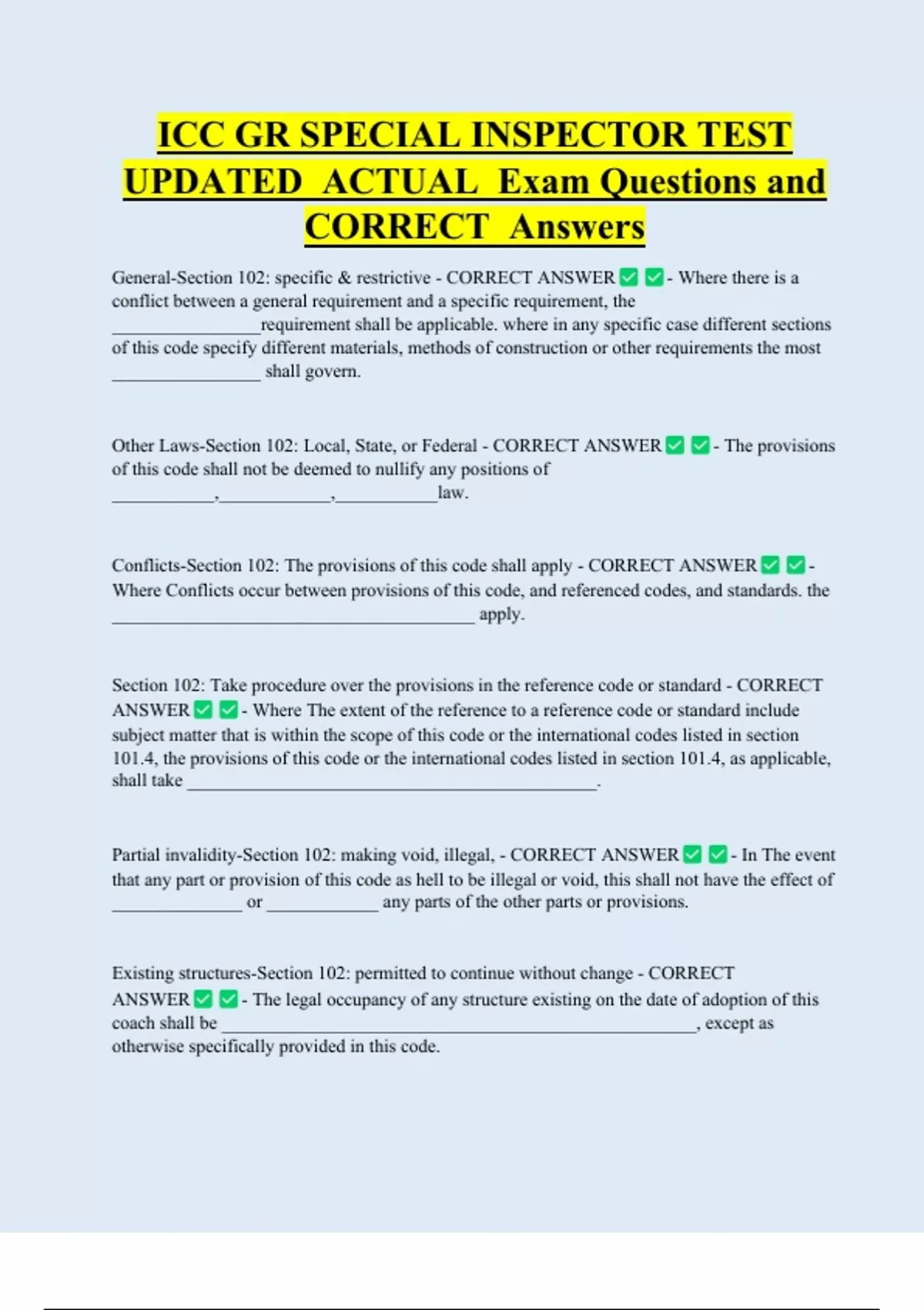 Conflicts-Section 102: The provisions of this code shall apply - CORRECT ANSWER -