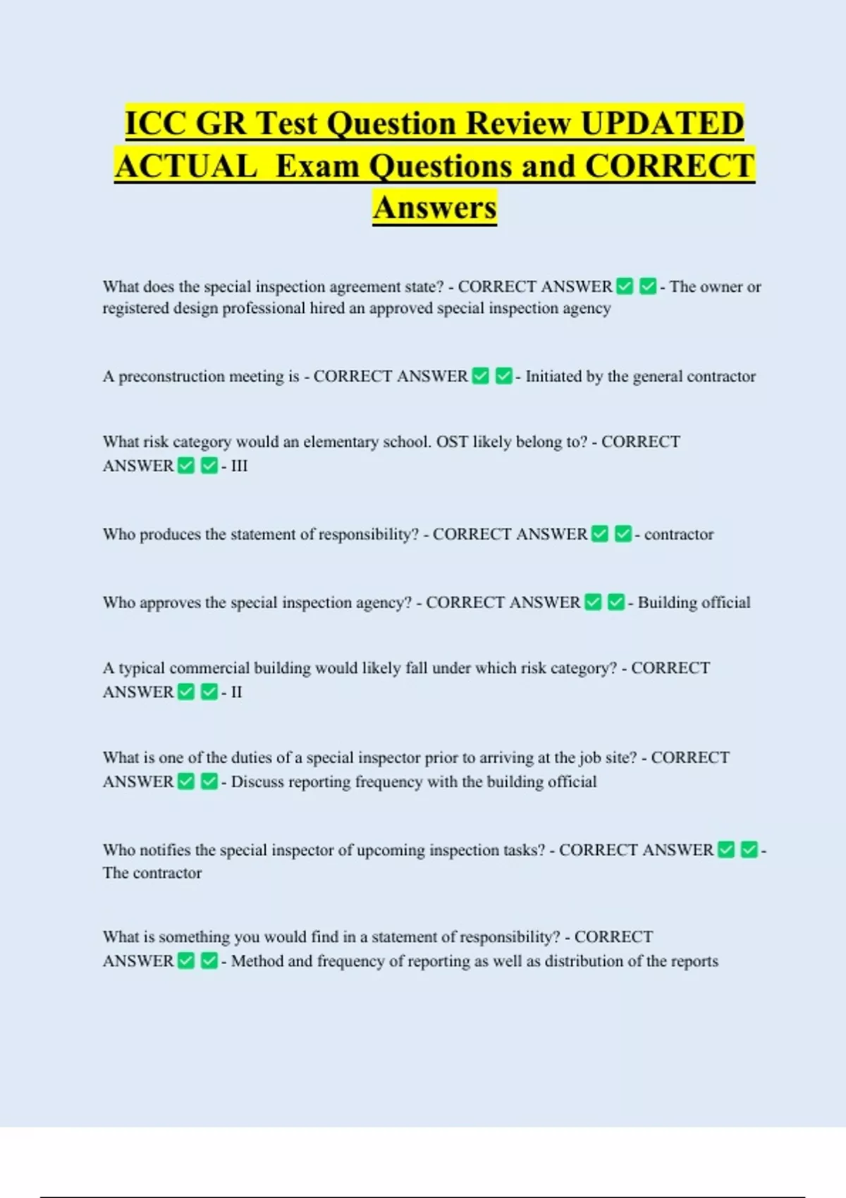 ICC GR Test Question Review UPDATED ACTUAL Exam Questions and CORRECT Answers