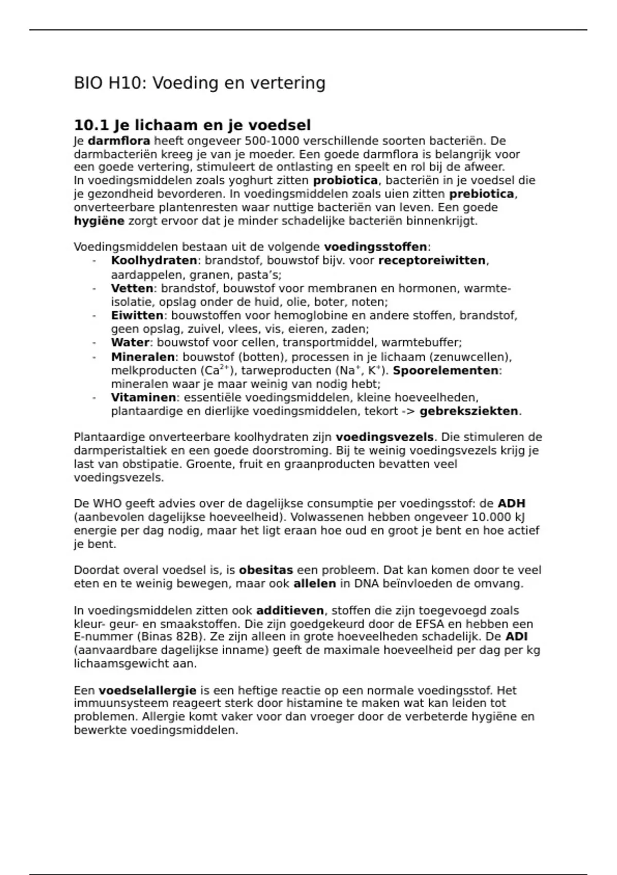 BIO H10: Voeding en vertering