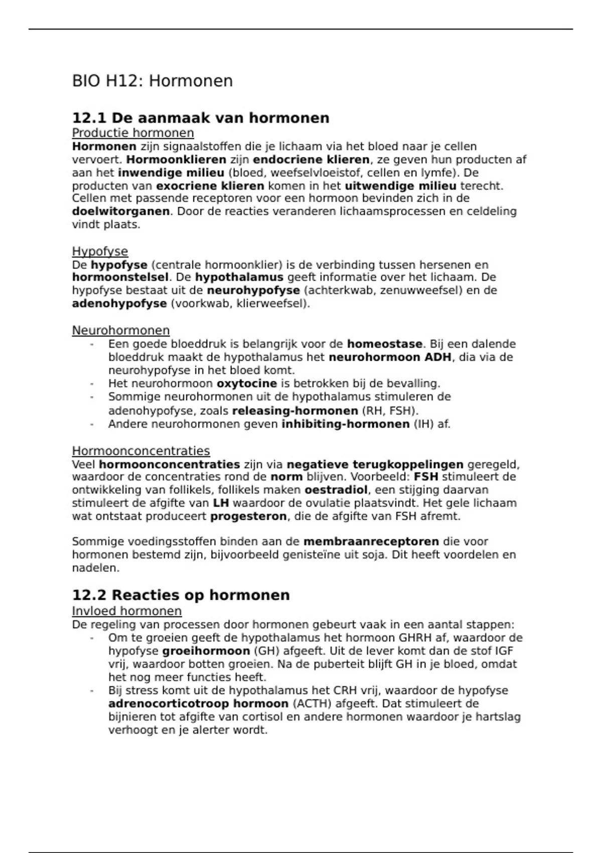 In deze samenvatting wordt hoofdstuk 12 over Hormonen behandeld. Elk onderwerp wordt duidelijk en overzichtelijk uitgelegd, wat deze samenvatting zeer geschikt maakt om te helpen met leren voor repetities of PTA's.