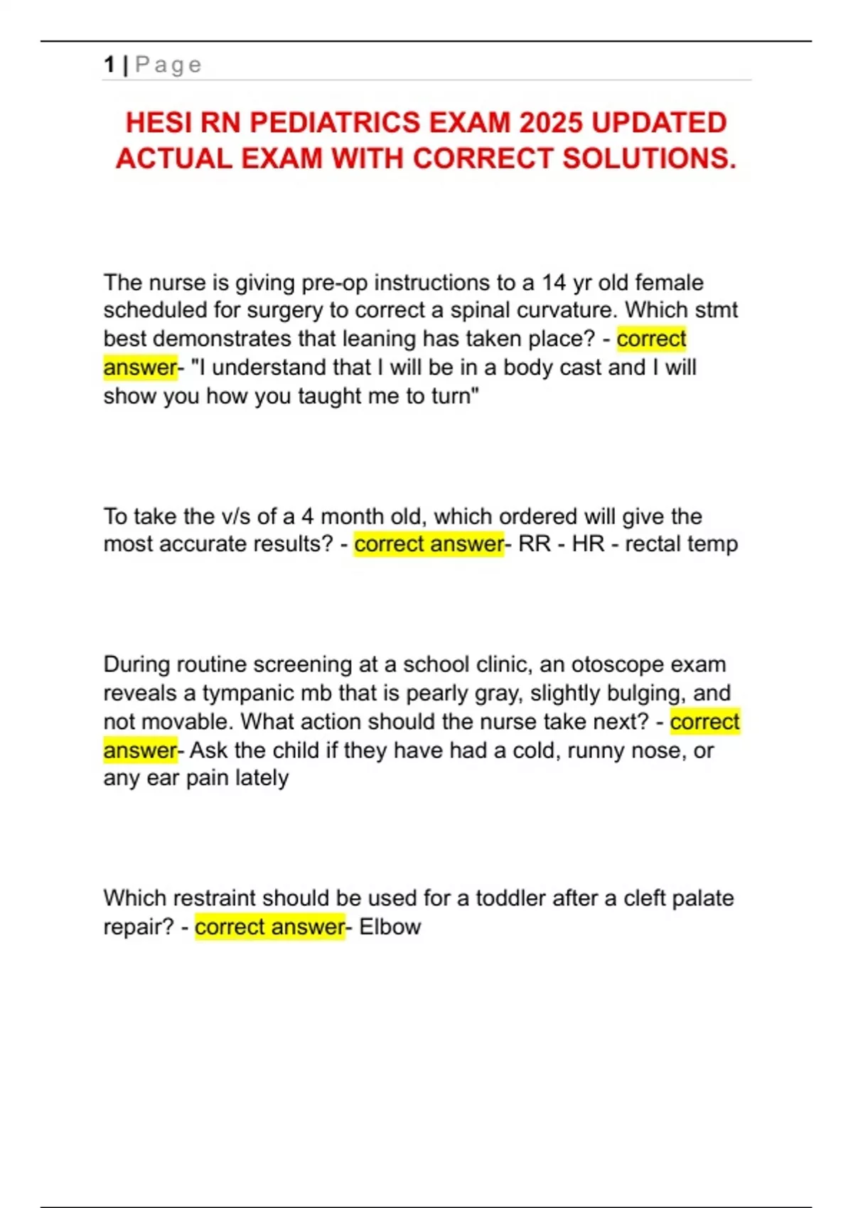 HESI RN PEDIATRICS EXAM 2025 UPDATED