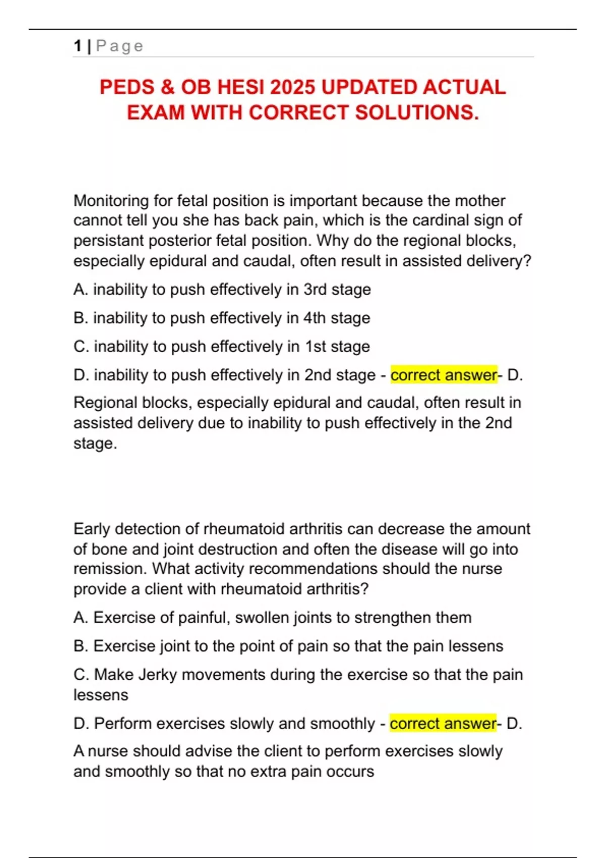 PEDS & OB HESI 2025 UPDATED ACTUAL