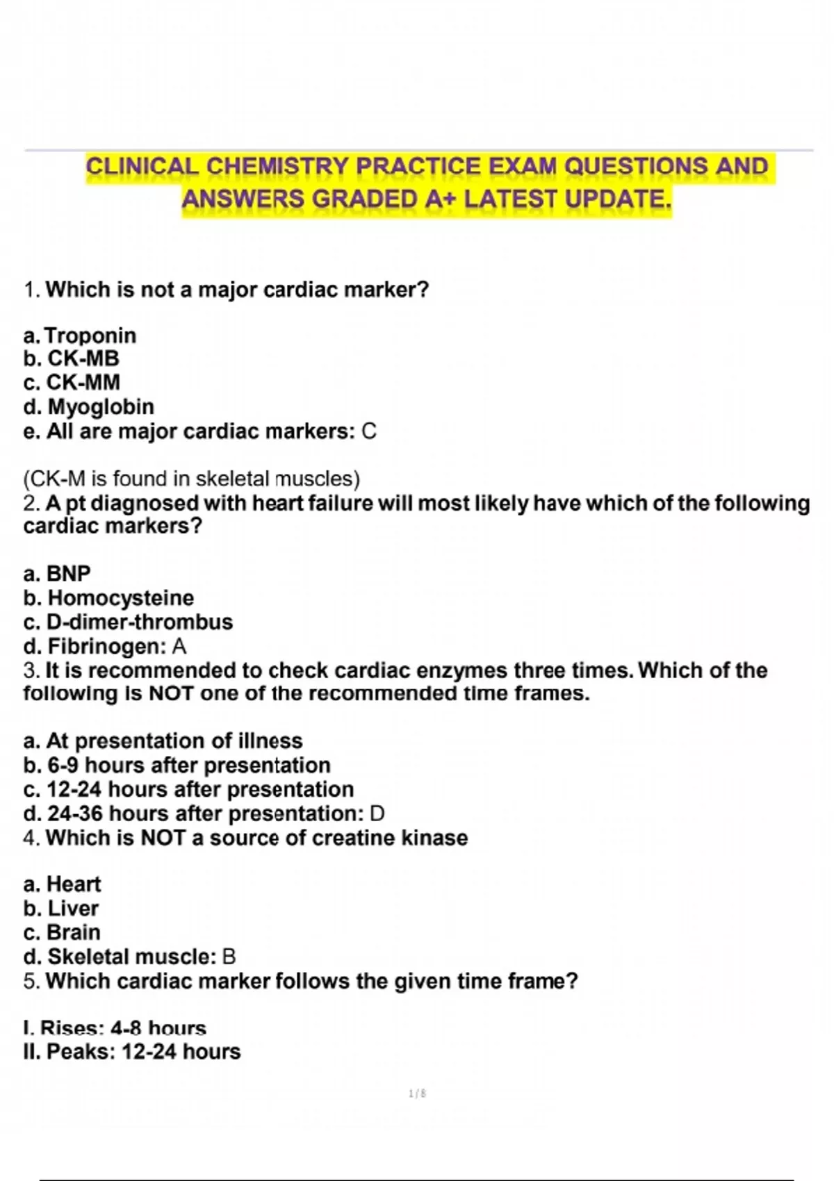 CLINICAL CHEMISTRY PRACTICE EXAM QUESTIONS AND ANSWERS GRADED A+ LATEST UPDATE.