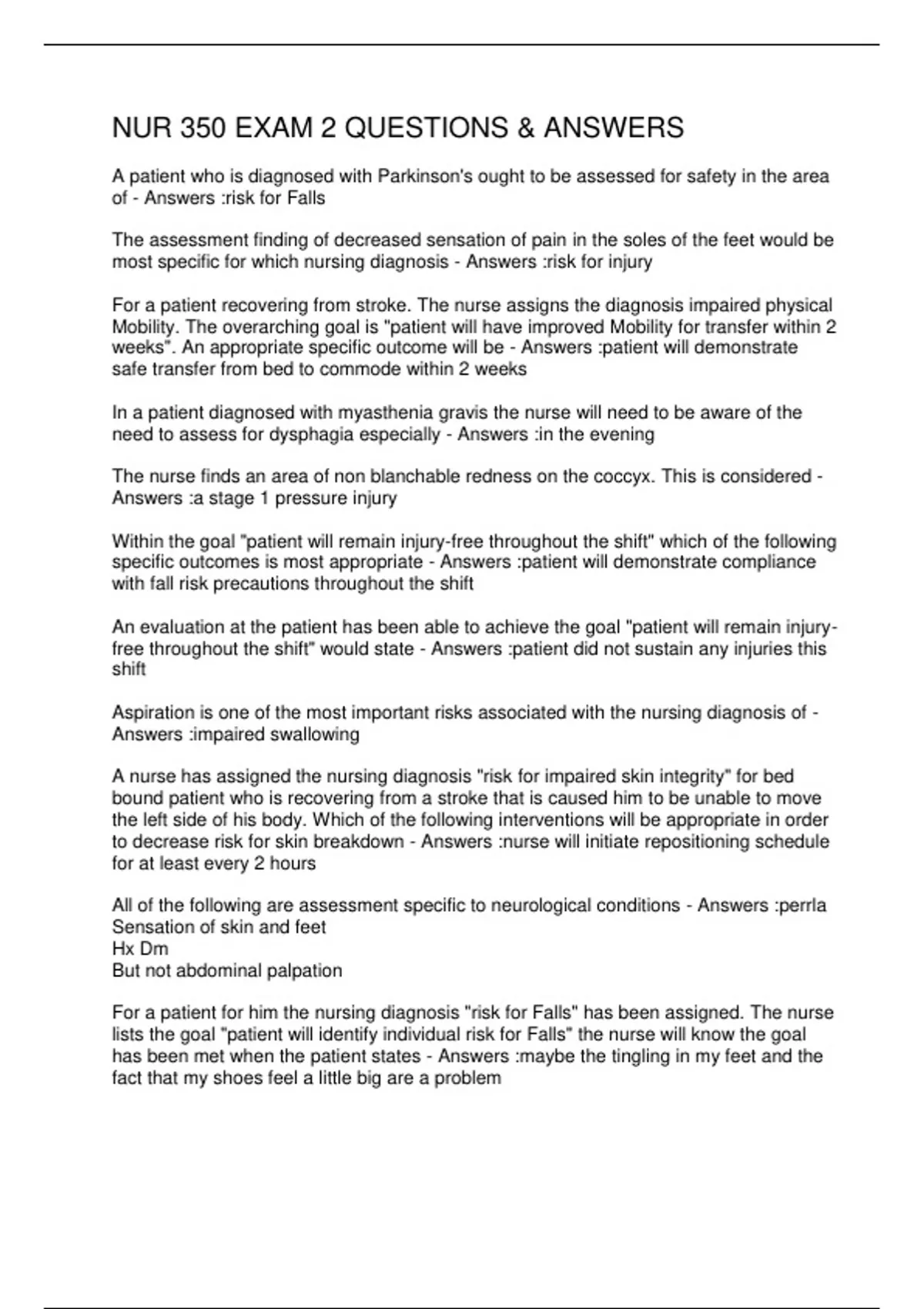 NUR 350 EXAM 2 QUESTIONS & ANSWERS